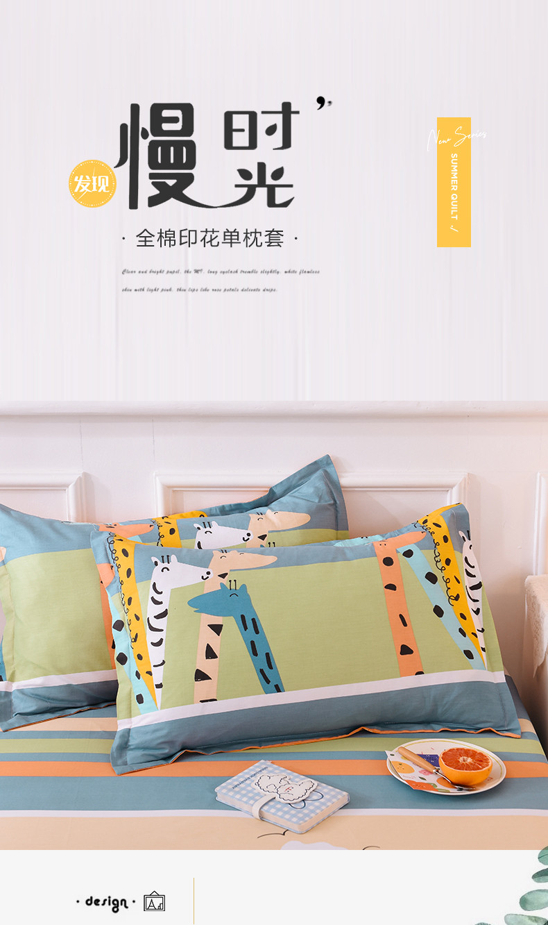 多品家纺 2023新款12868全棉双针单枕套 鹿可可
