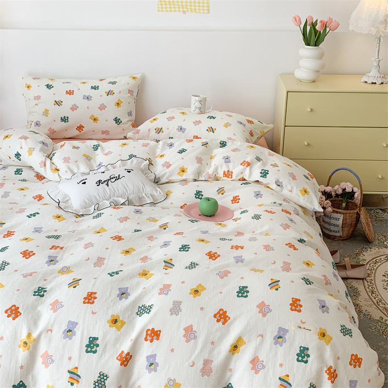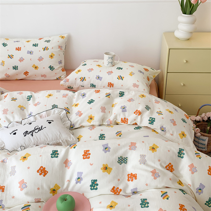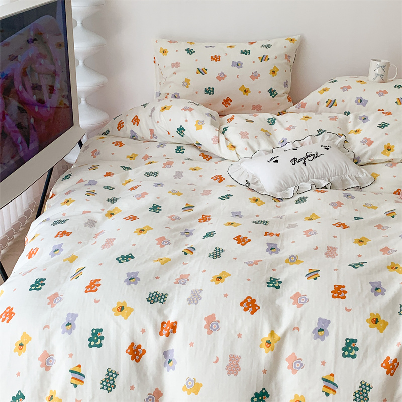 商品名称:昔可家纺 2023新款普通款全棉有氧双层纱四件套 彩色小熊