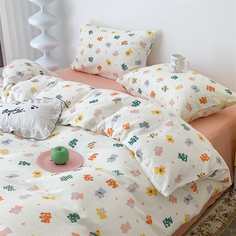 昔可家纺 2023新款普通款全棉有氧双层纱四件套 彩色小熊