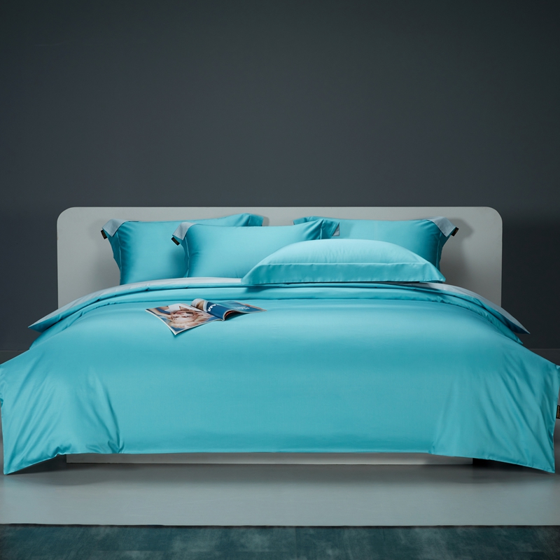 • 91家纺网 家纺一手货源 找家纺 莱阁亿 2023新款高支高密新疆长绒棉纯色双拼单品被套 竹韵湖蓝&竹韵灰