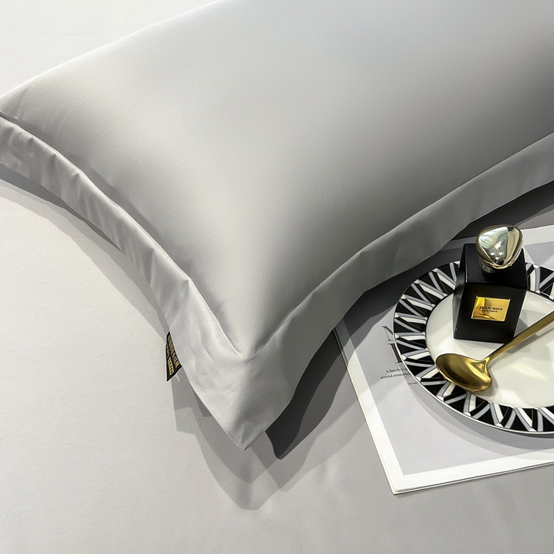 莱阁亿 2023新款高支高密纯色新疆长绒棉四件套单品枕套 沙滩灰
