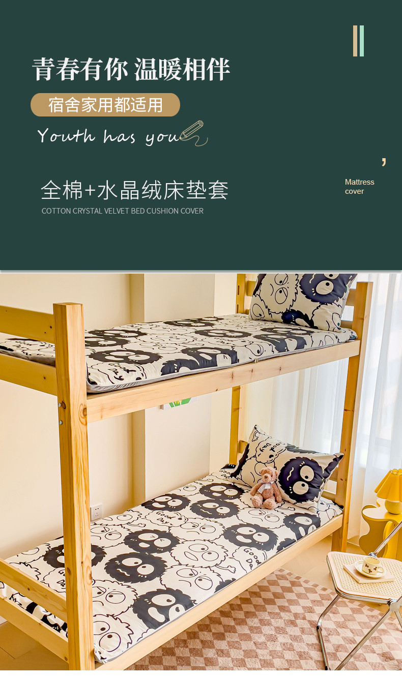 当前位置: 91家纺网 > 商品网购 > 床垫/床褥 > 普通床垫 > 金丝鸟 2023新款全棉加水晶绒棉加绒床垫套 小煤球