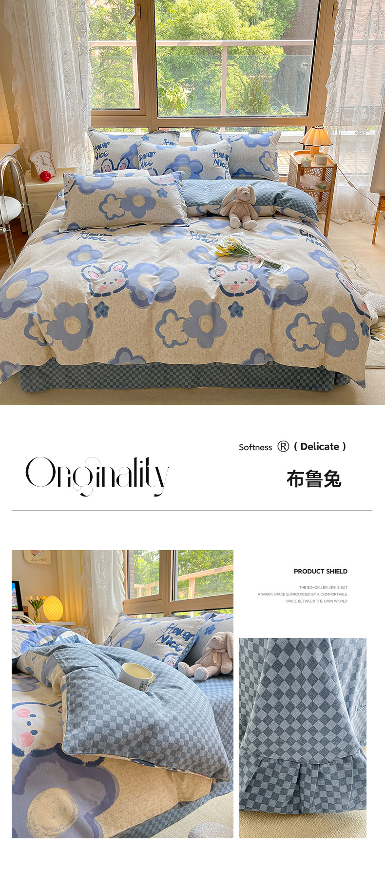 当前位置: 91家纺网 > 商品网购 > 床品套件 > 四件套 > 普通磨毛四件套 > 莱米 2023新款全棉磨毛印花四件套 布鲁兔