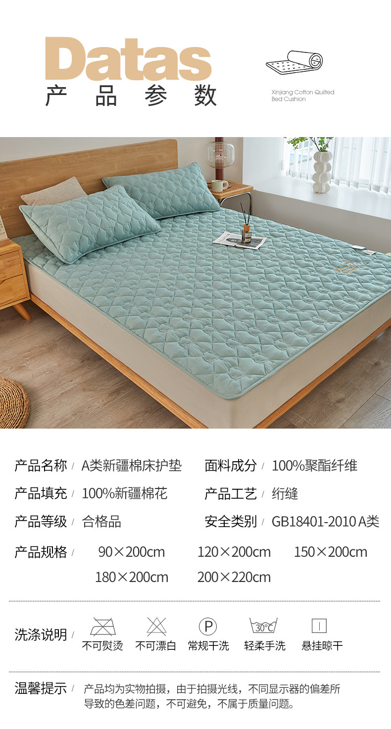 商品名称:千百笠 2023新疆棉花床褥软垫床护垫家用床垫软垫可折叠垫子床褥 典雅-绿