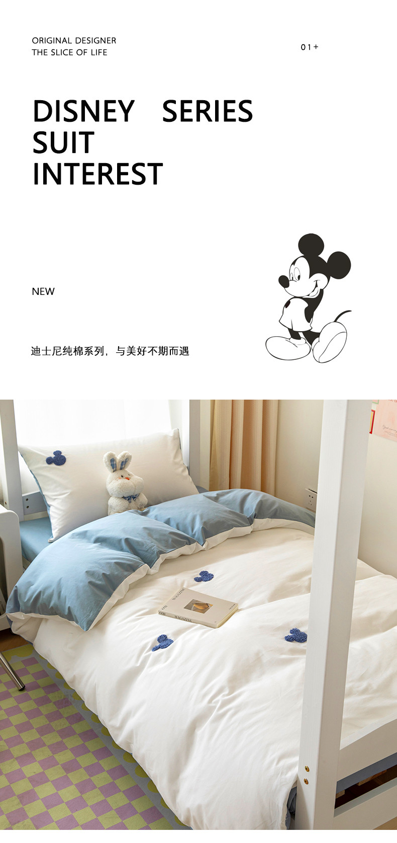 Mr.pig猪先生 2023新款迪士尼全棉水洗棉小清新四件套米奇双拼白