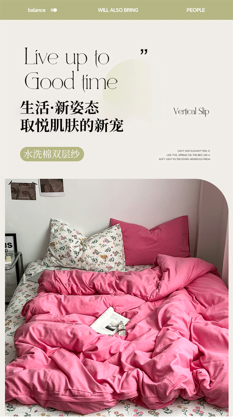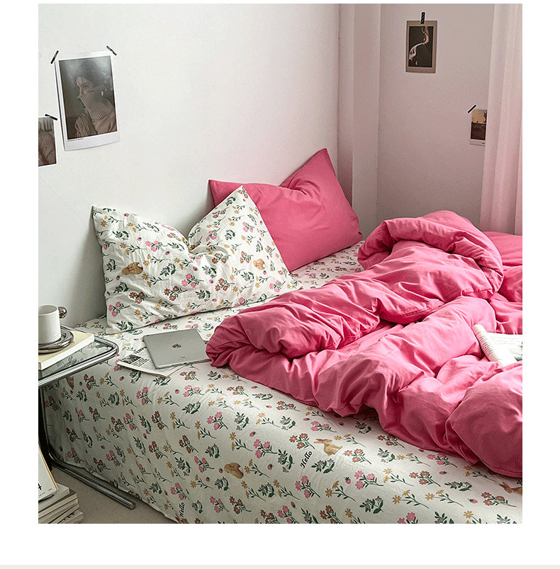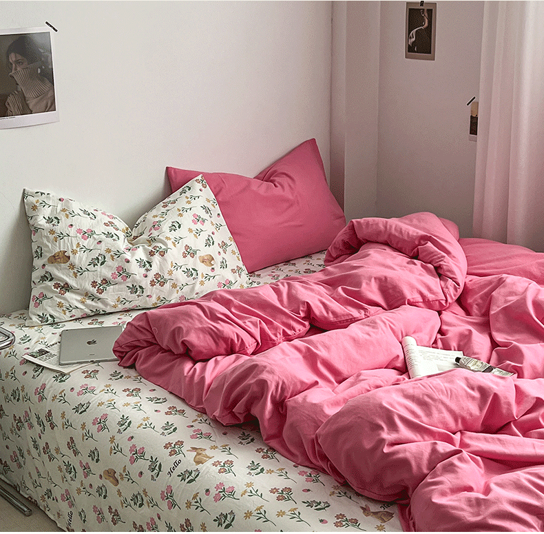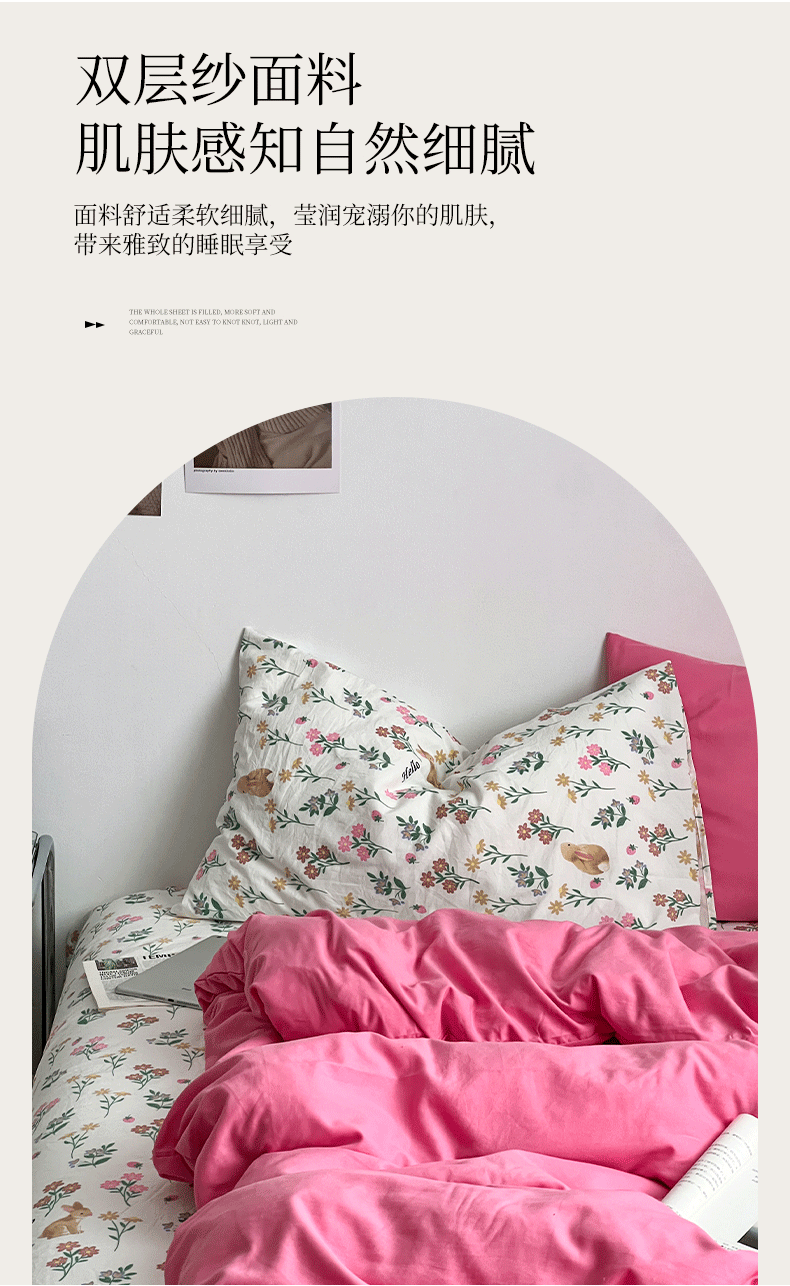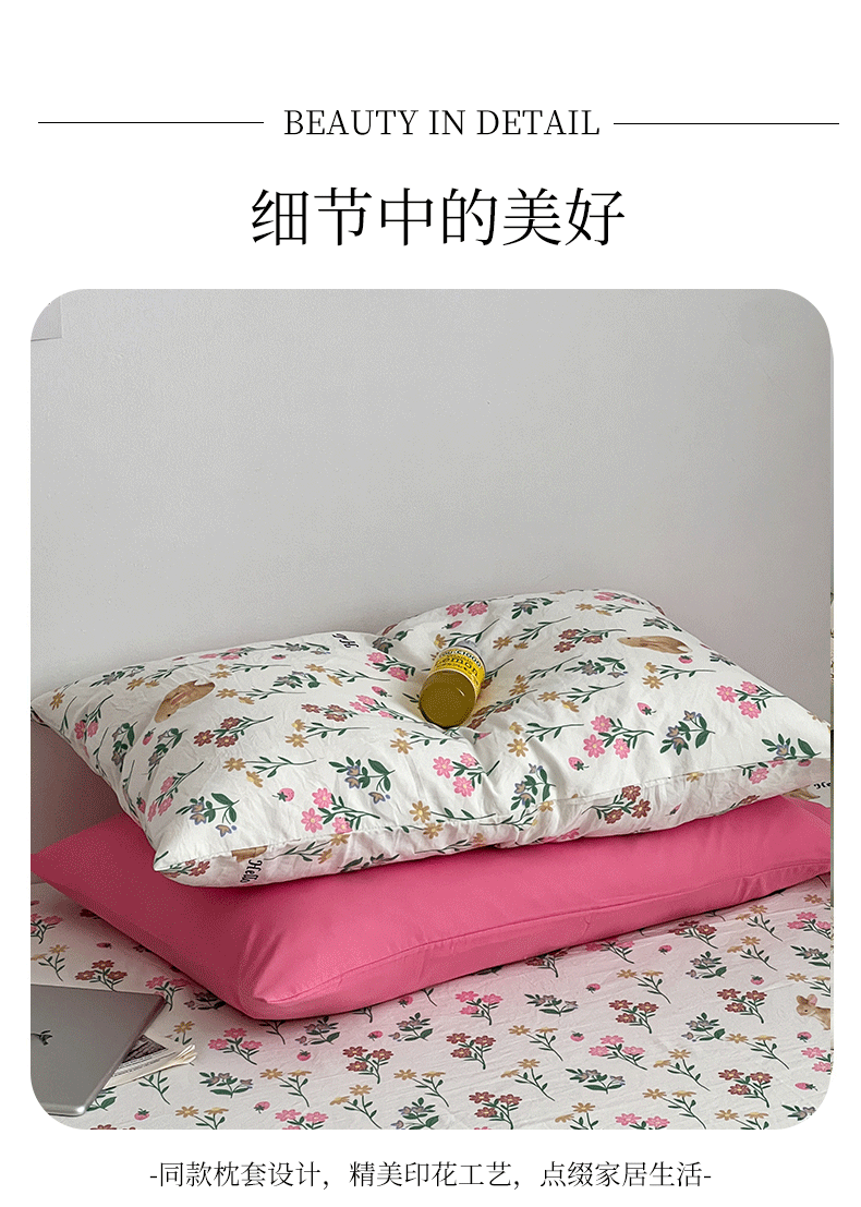 当前位置: 91家纺网 > 商品网购 > 床品套件 > 四件套 > 水洗棉四件套 > 直播热款A类水洗棉双层纱四件套纯色小碎花被套床笠三件套 树莓红+春意
