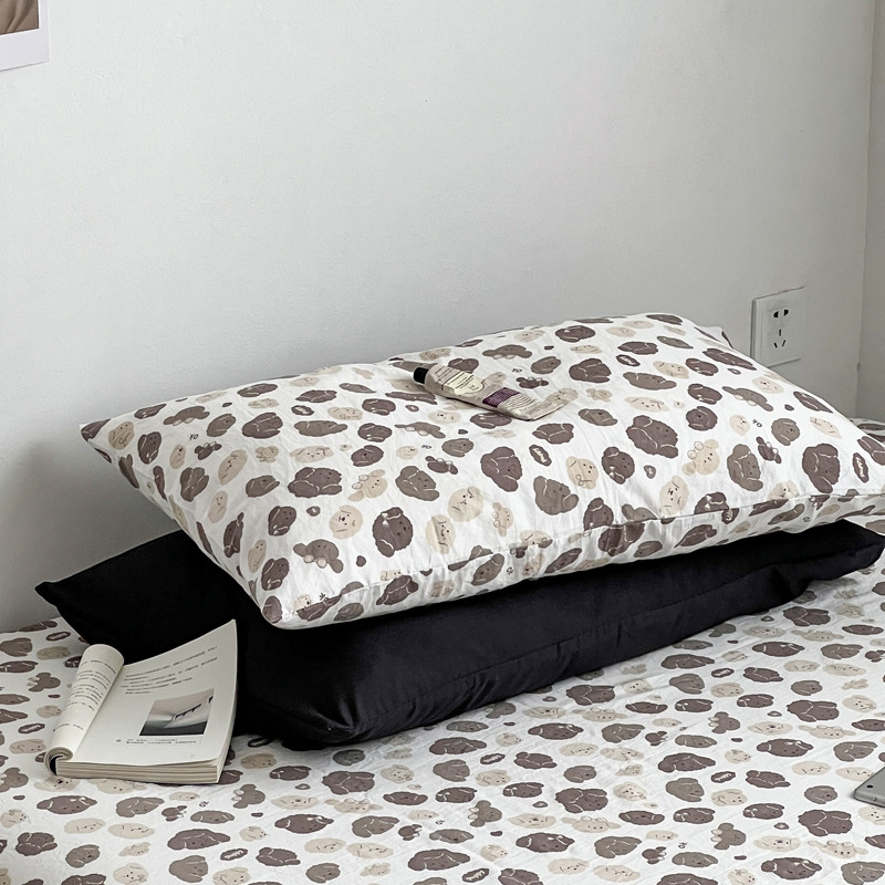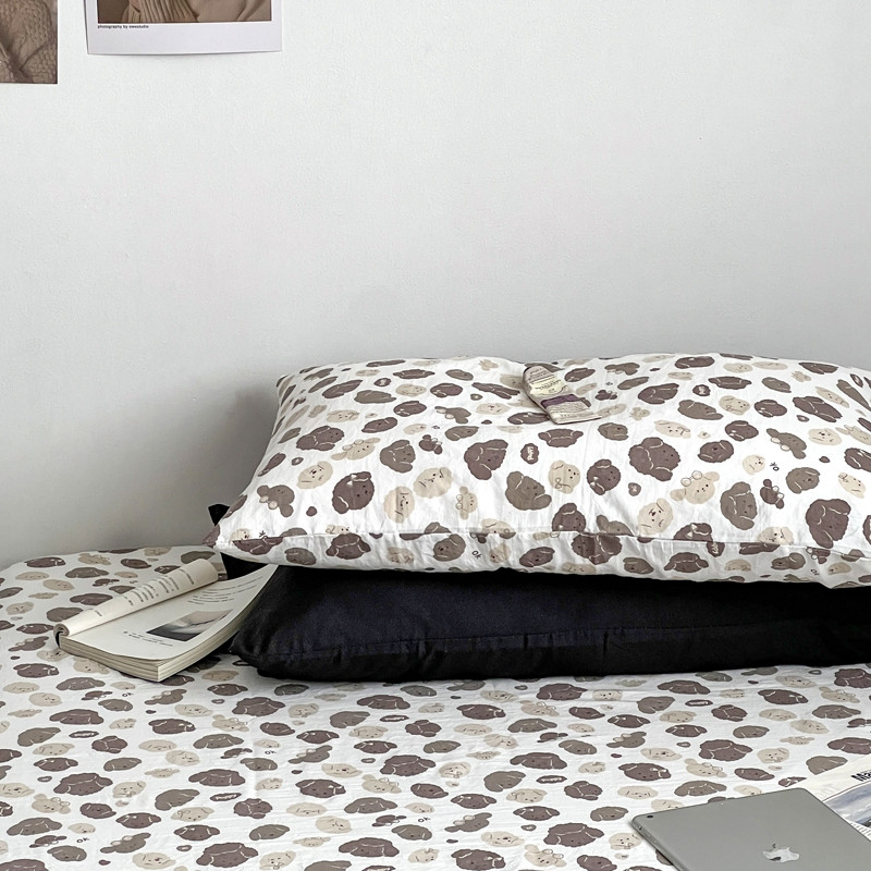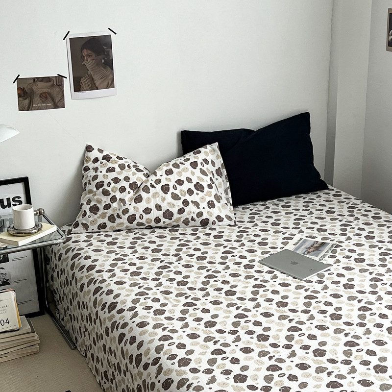 直播热款水洗棉双层纱四件套碎花简约风床单单品单件 闪耀黑+欢乐狗