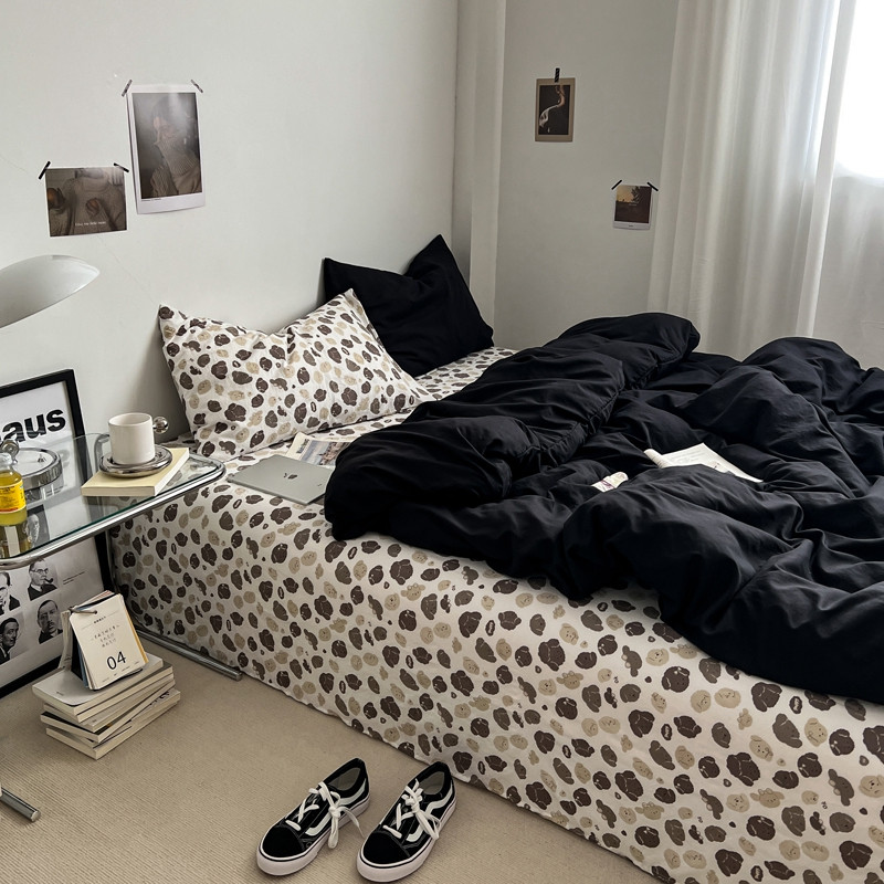商品名称:直播热款水洗棉双层纱四件套碎花简约风床单单品单件 闪耀黑+欢乐狗
