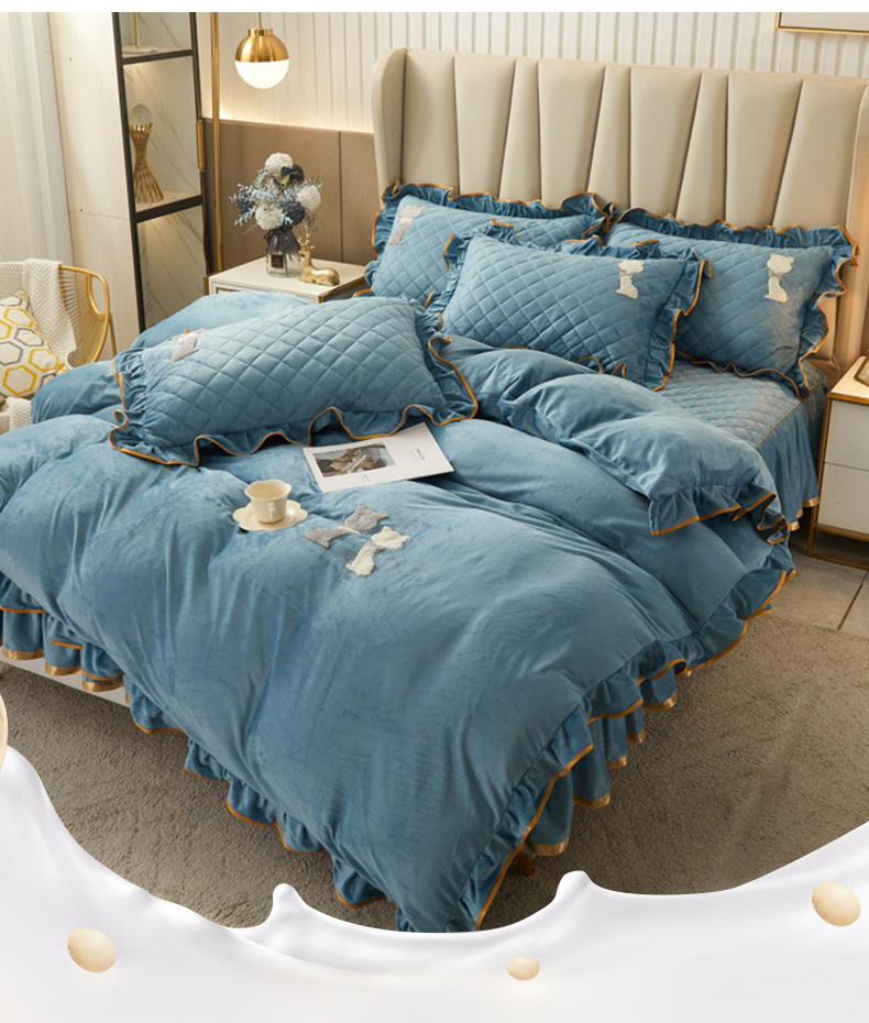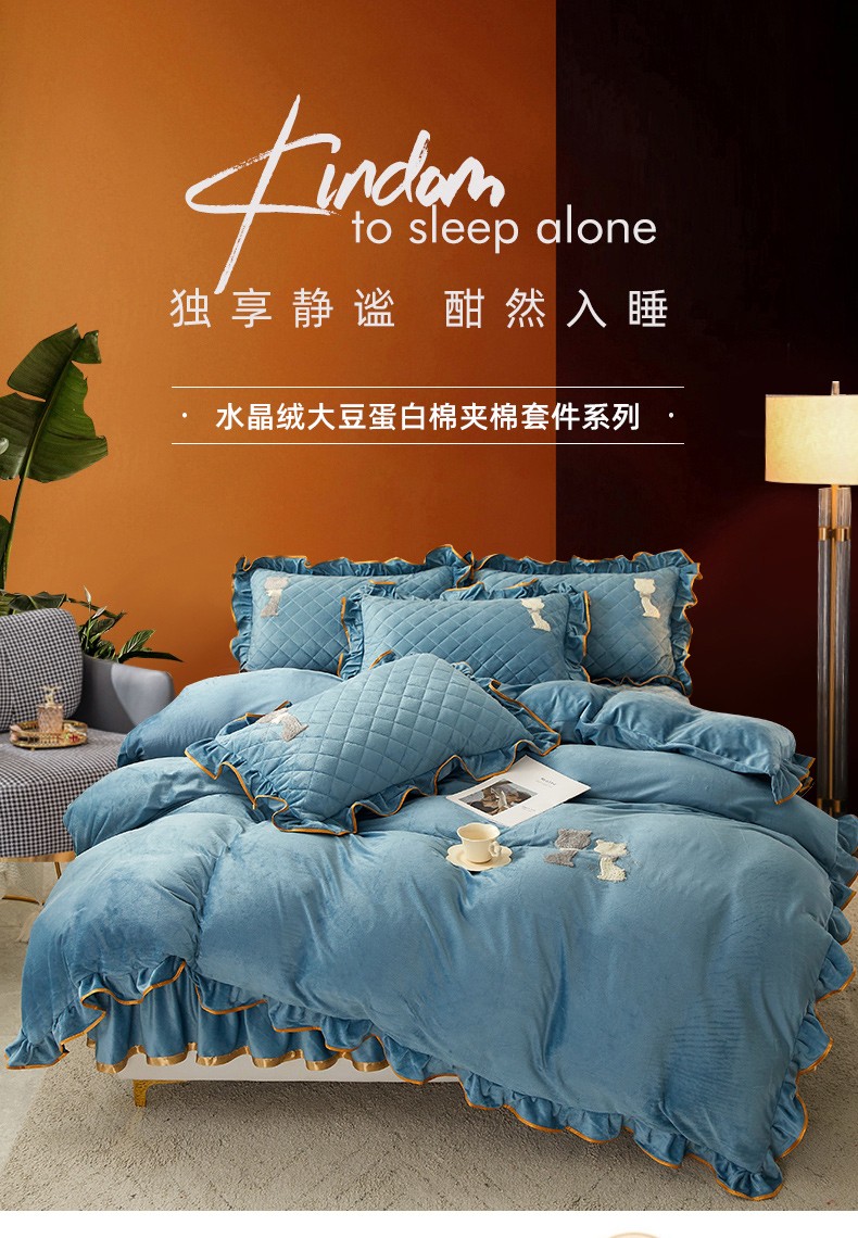 当前位置: 91家纺网 > 商品网购 > 床品套件 > 四件套 > 水晶绒四件套 > 恋尚 2023新款水晶绒夹棉床裙床笠四件套-KT猫系列 绅蓝