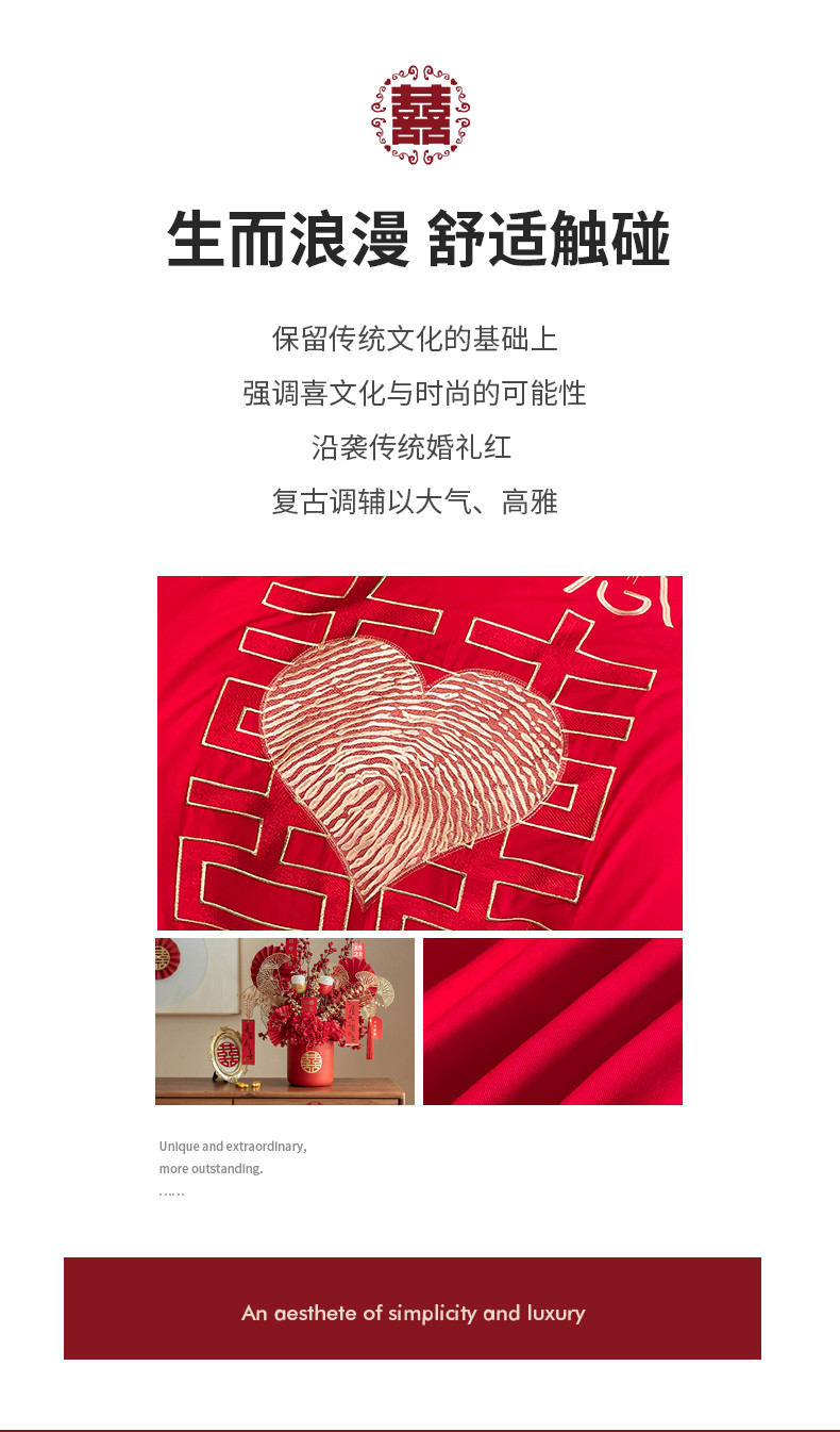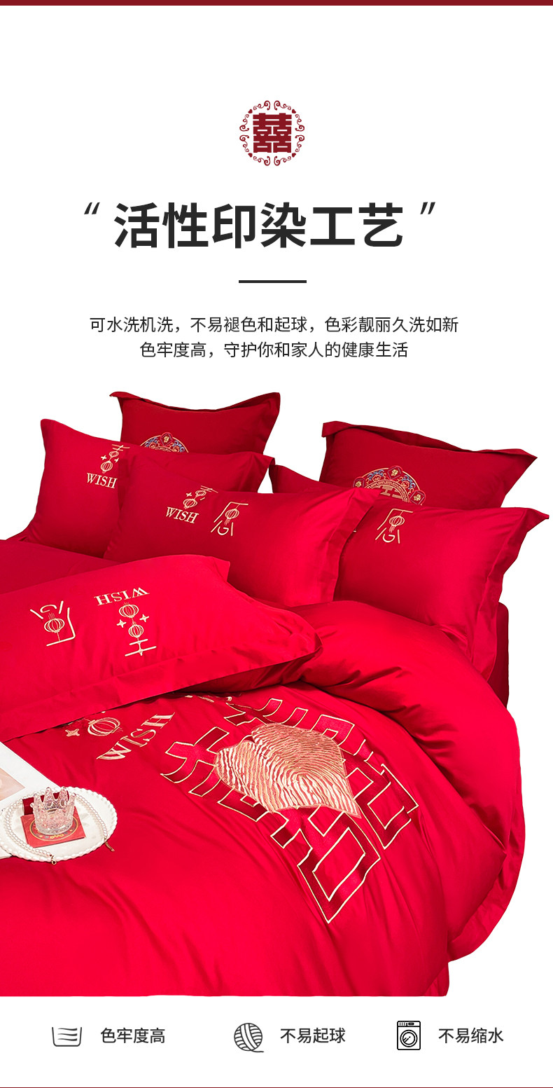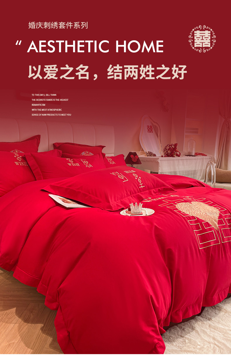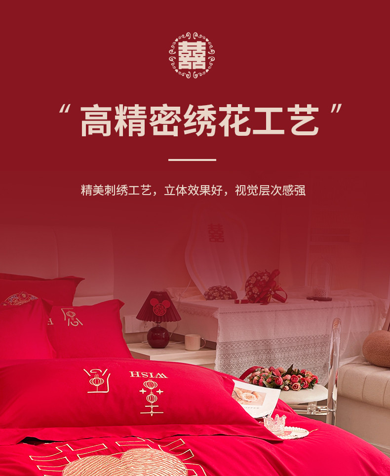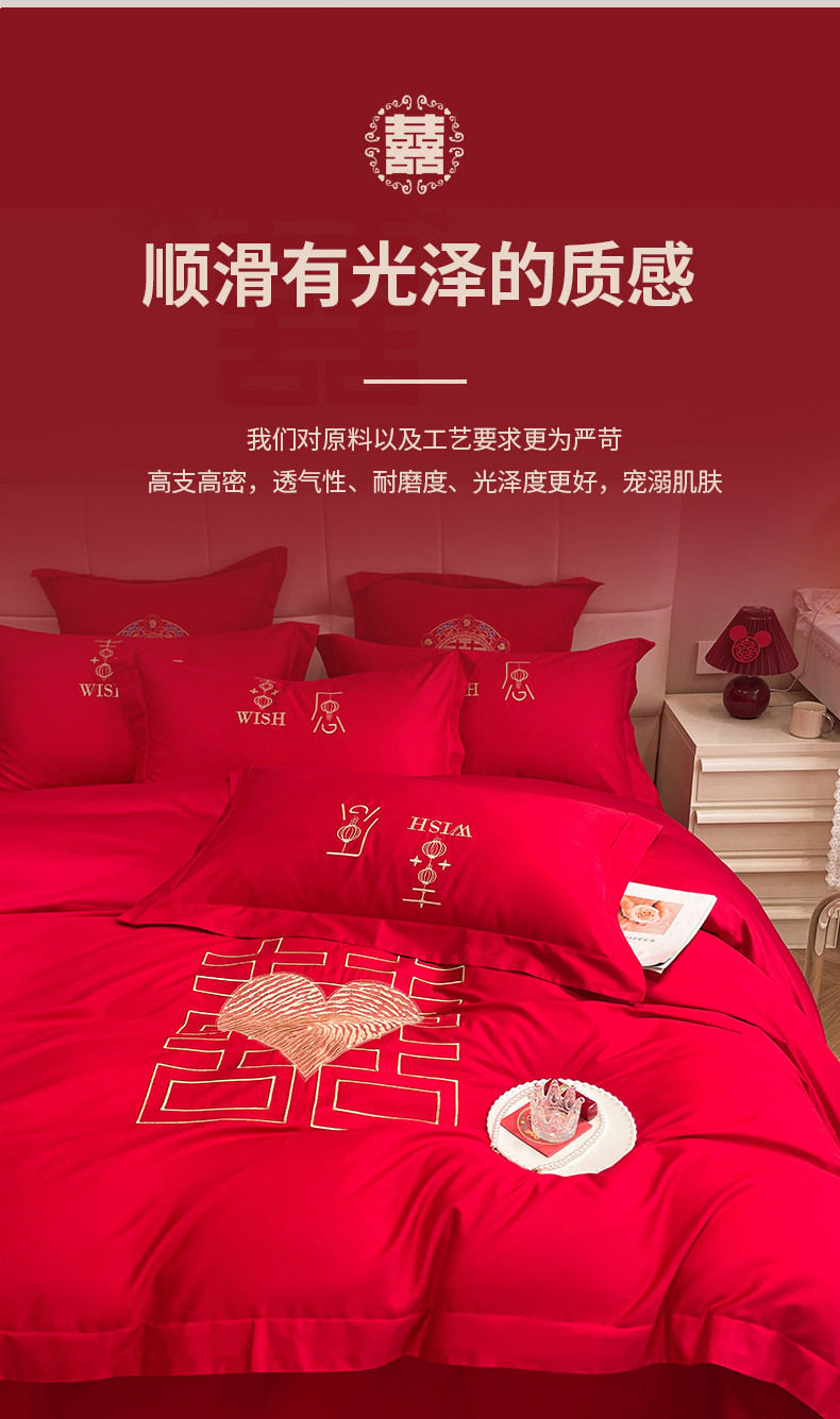 当前位置: 91家纺网 > 商品网购 > 床品套件 > 四件套 > 婚庆四件套 > 玉雅家纺 2025新款亲肤刺绣婚庆四件套 喜愿