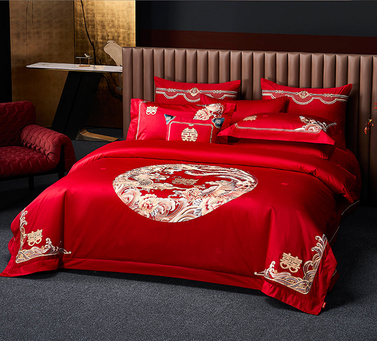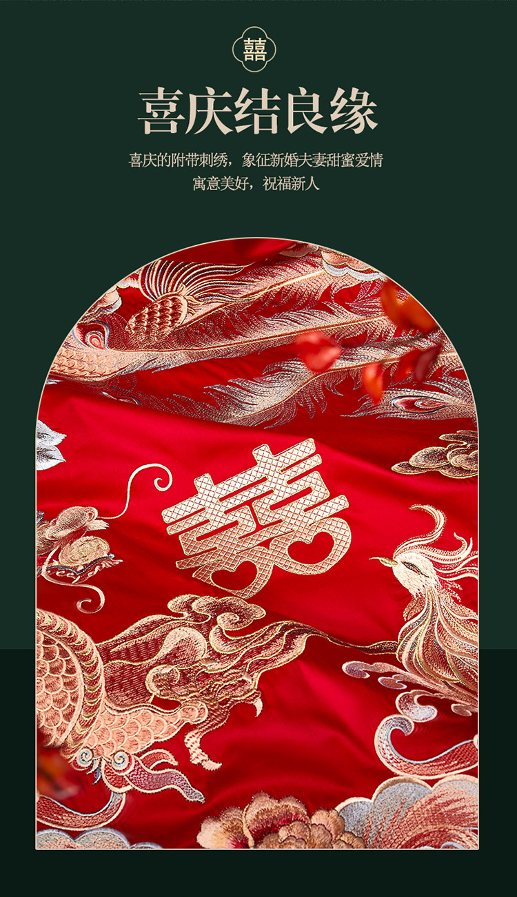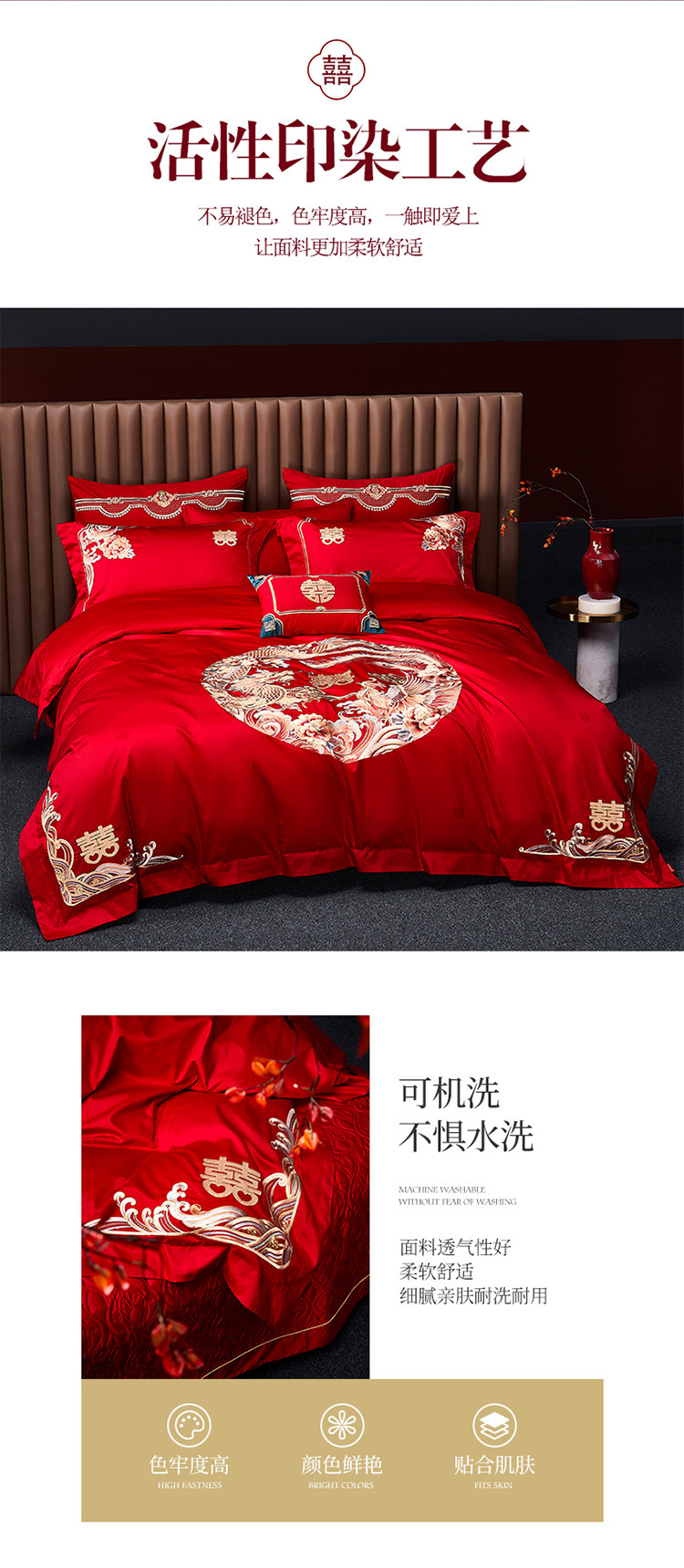 当前位置: 91家纺网 > 商品网购 > 床品套件 > 四件套 > 提花四件套 > 高大尚 2023新款长绒棉提花四件套龙凤喜事