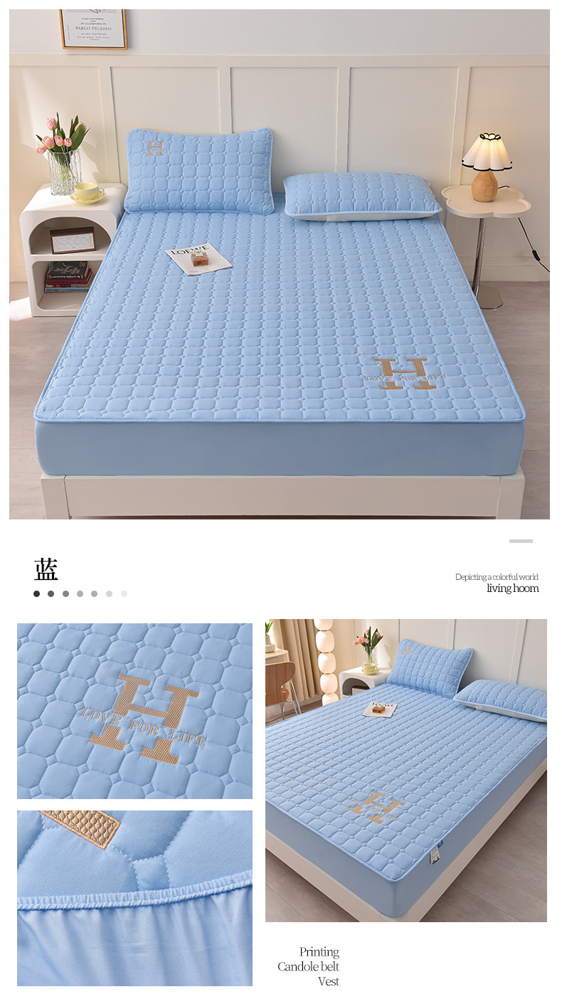 富威堡家纺 2023新款原棉H标刺绣棉花床笠 刺绣-蓝