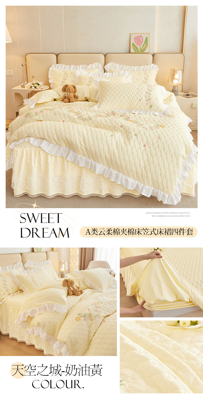 宜凡 2023新款A类云柔棉床笠式床裙四件套 天空之城-奶油黄