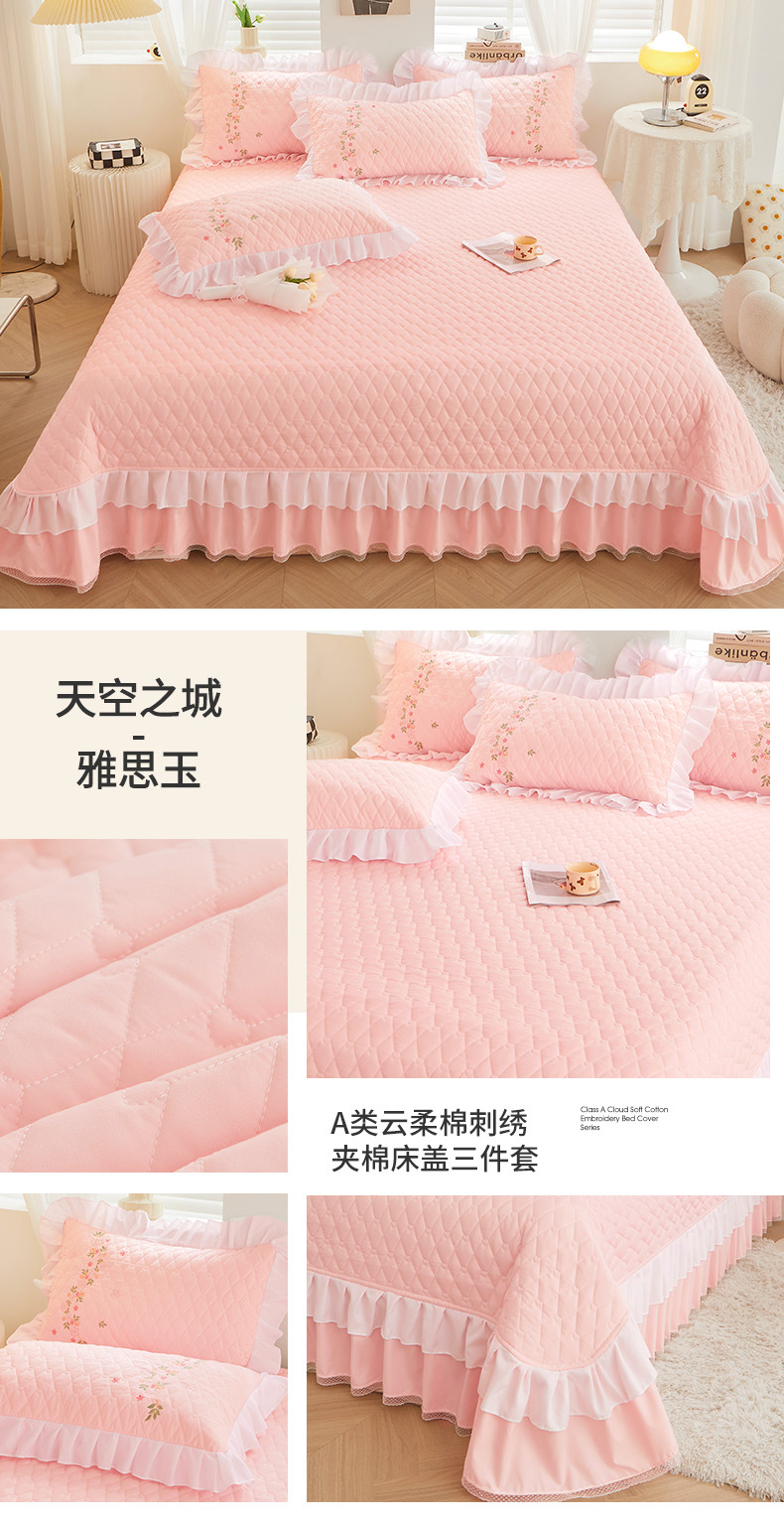 当前位置: 91家纺网 > 商品网购 > 床品套件 > 三件套 > 宜凡 2023新款A类云柔棉床盖夹棉三件套 雅思玉