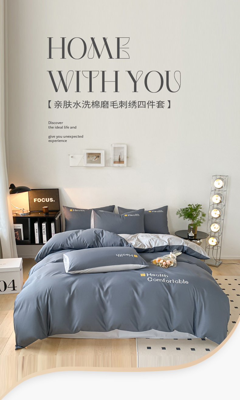 (总)欣晴家纺 2025新款亲肤水洗棉磨毛刺绣四件套-挚爱系列,粉玉+浅灰,焦糖+米驼,米白,米白+浅灰,米黄+粉玉,米黄+焦糖,米驼,米驼+深灰,浅灰+米驼,深灰+浅灰