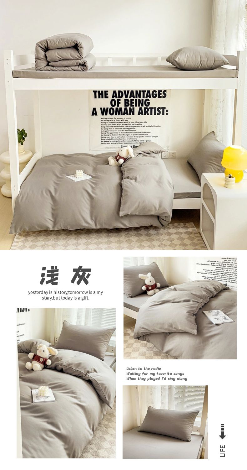 (总)曼璐 2025新款水洗棉无印风纯色条格学生三件套,草莓格,丁香玉,粉卡其,黑白条,黄小格,卡其灰,蓝小格,洛克兰灰,芒果格,米小格,蜜粉灰,浅灰,浅灰深灰,深灰,雾蓝洛克兰,雾蓝玉,玉深灰,芝士黄洛克兰,芝士卡其