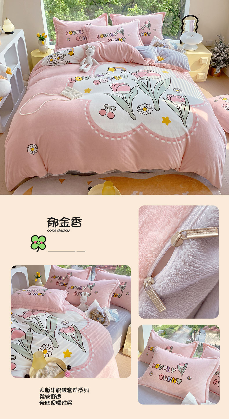 商品名称:莱米2023直播小清新卡通大版印花牛奶绒四件套保暖绒四件套 郁金香