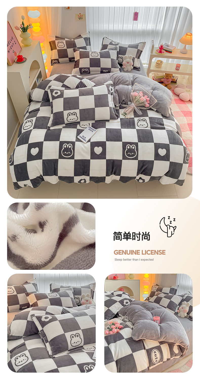 莱米家纺 2023新款小版牛奶绒印花四件套 简单时尚