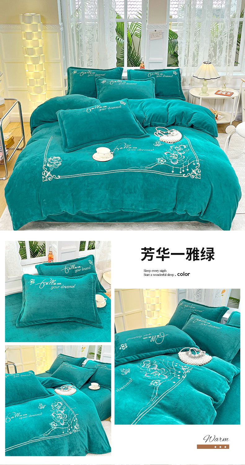 商品名称:易辰美 2023新款芳华系列保暖牛奶绒刺绣四件套 芳华一雅绿