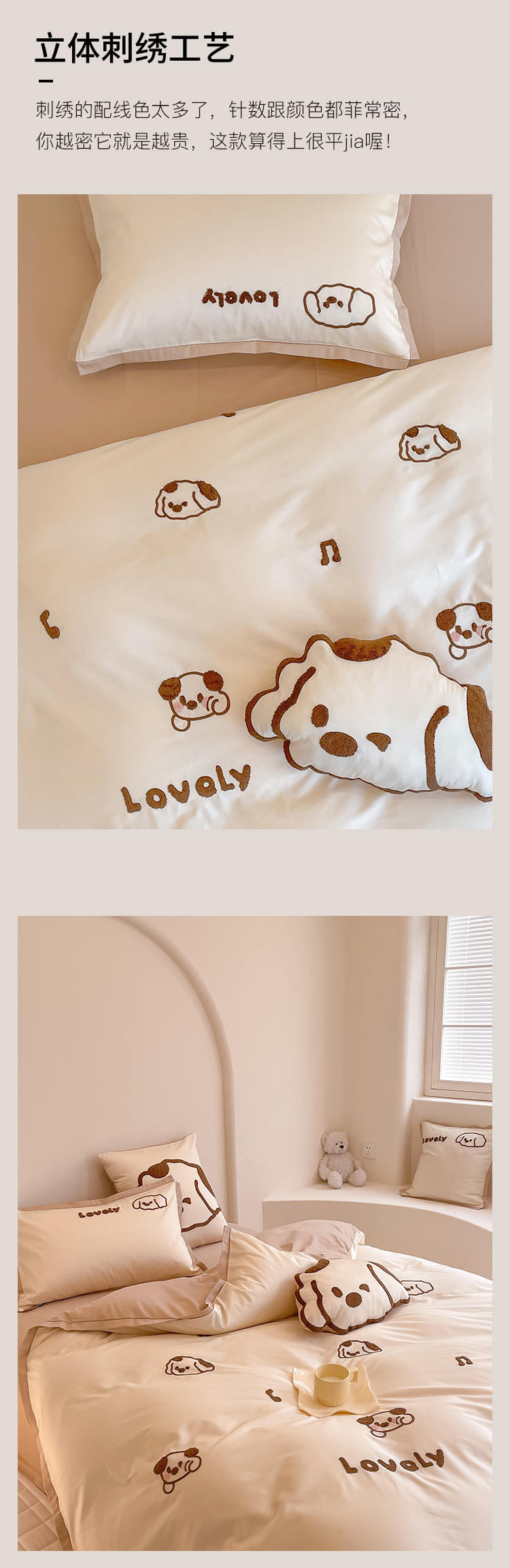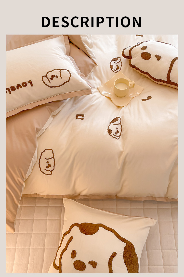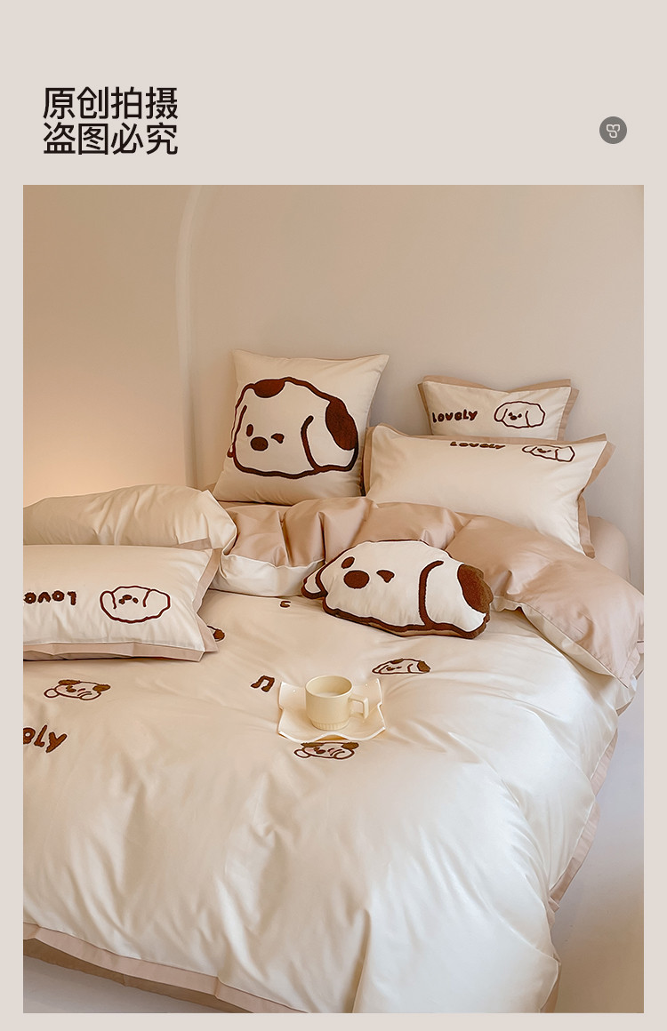商品名称:西西 2023新款100支澳棉贡缎立体刺绣卡通四件套 奶酪狗