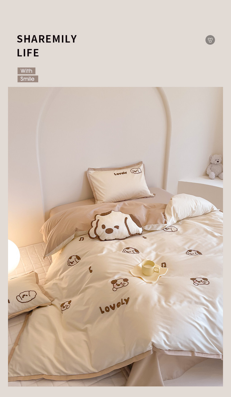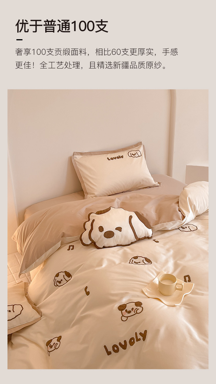 西西 2023新款100支澳棉贡缎立体刺绣卡通四件套 奶酪狗