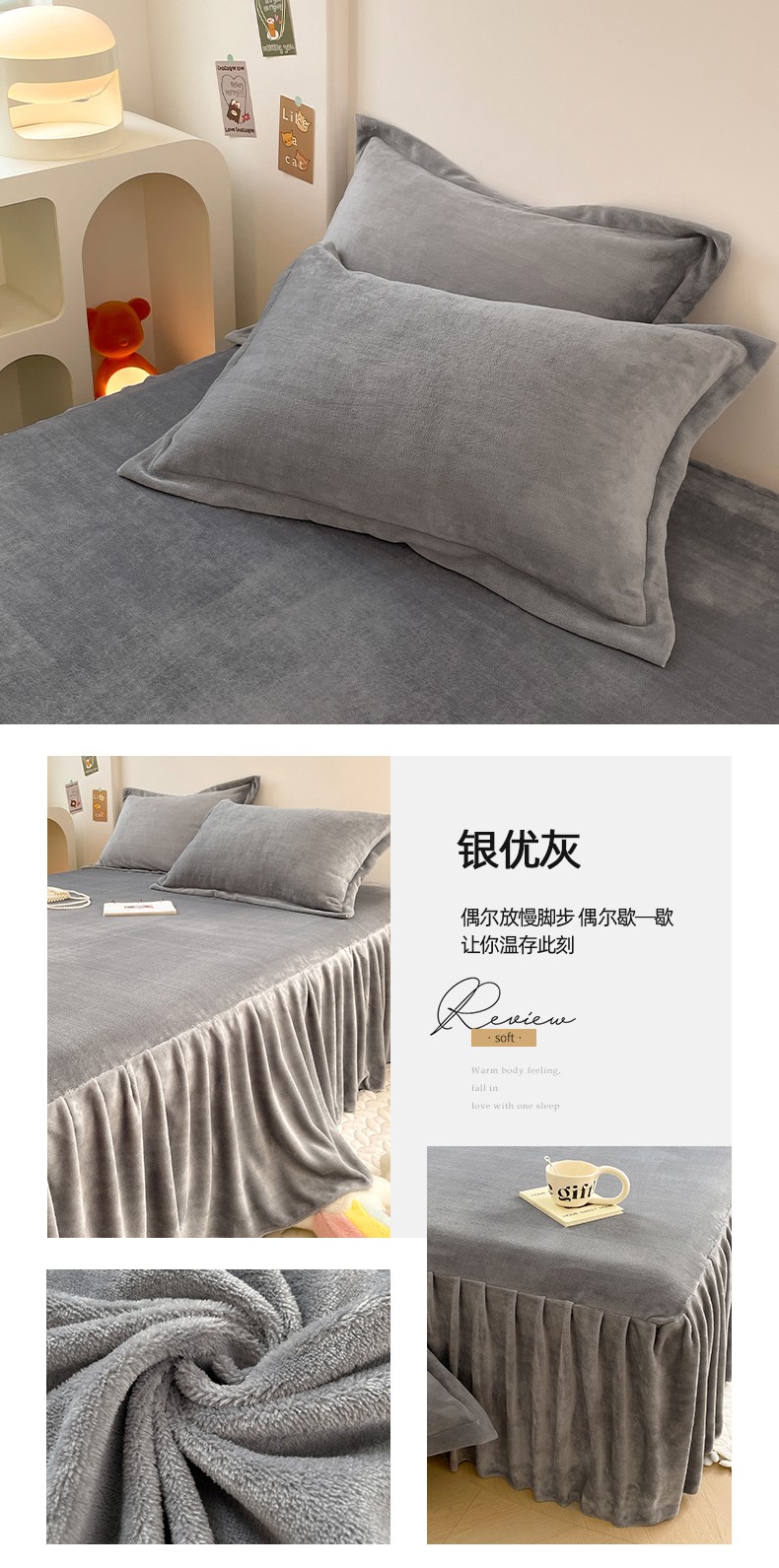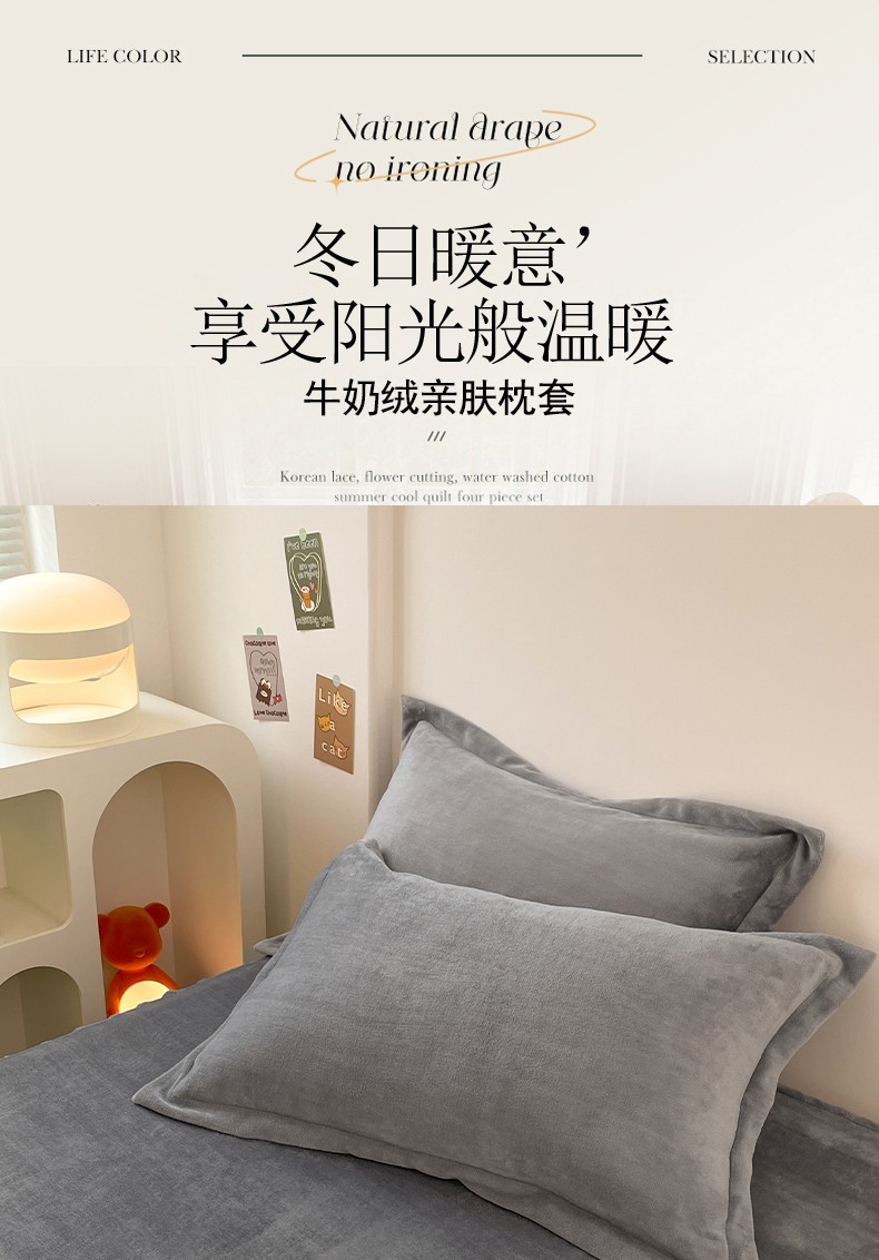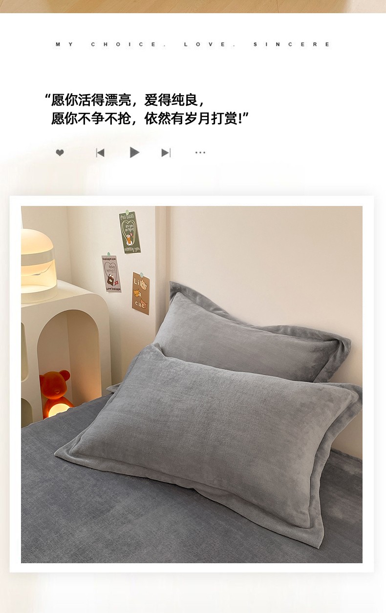 商品名称:梦舒羽 2025新款冬季牛奶绒枕套加厚加绒亲肤柔软枕芯套 银优灰