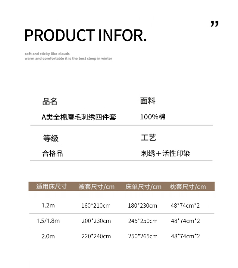 1.8m床笠款四件套 标准 | ¥190.00 |