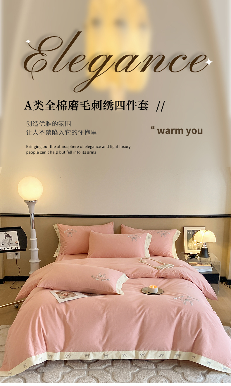 当前位置: 91家纺网 > 商品网购 > 床品套件 > 四件套 > 普通磨毛四件套 > 拼社家纺 全棉加厚磨毛四件套-minmin 时光粉