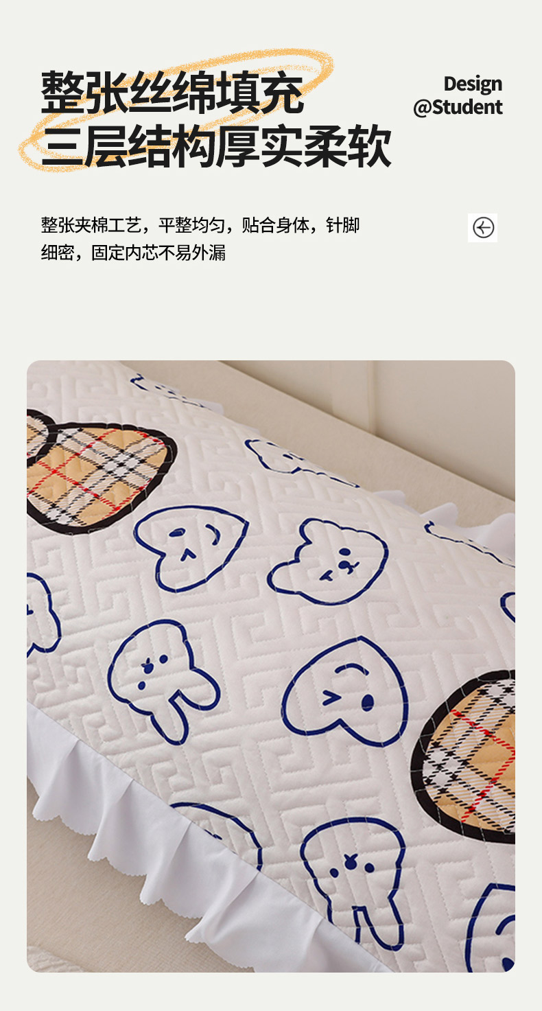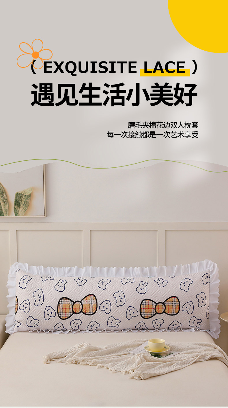 艾兜坊 2023新款磨毛夹棉花边双人枕套 蝴蝶结