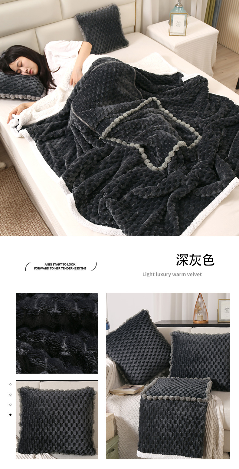 商品名称:伊可爱 2023秋冬多功能轻奢暖绒抱枕被盖毯 深灰色