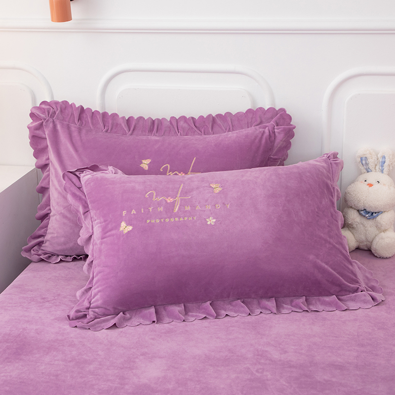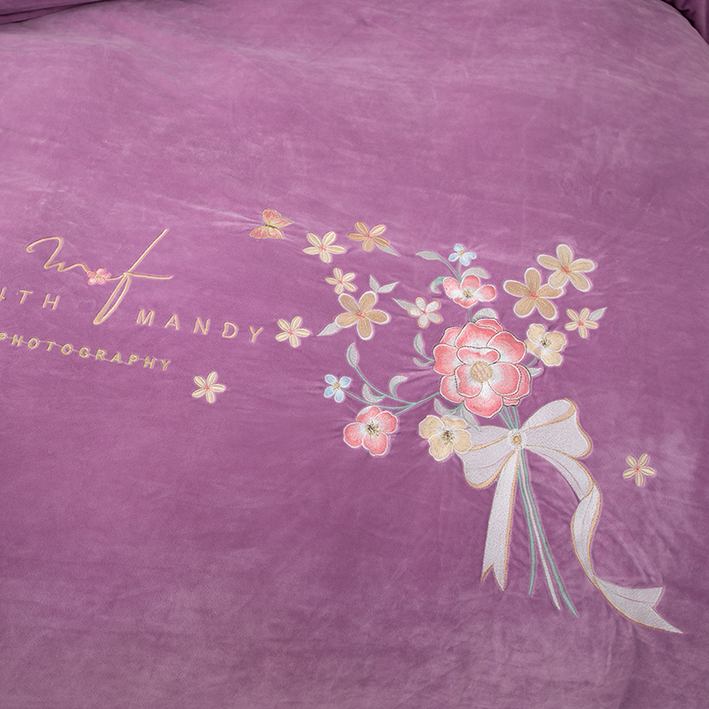 商品名称:优姿家纺 2024新品8.5斤德芙绒韩版床裙绣花保暖四件套 今生有约紫色