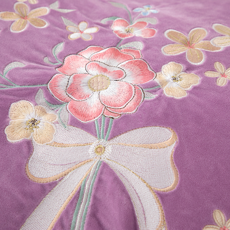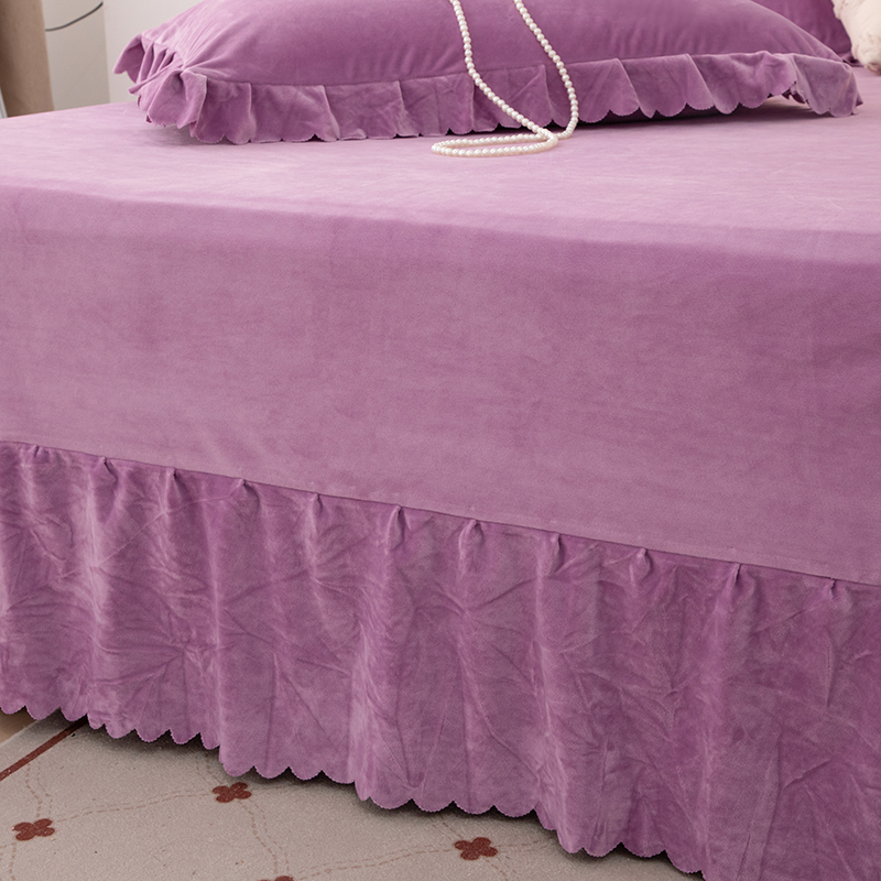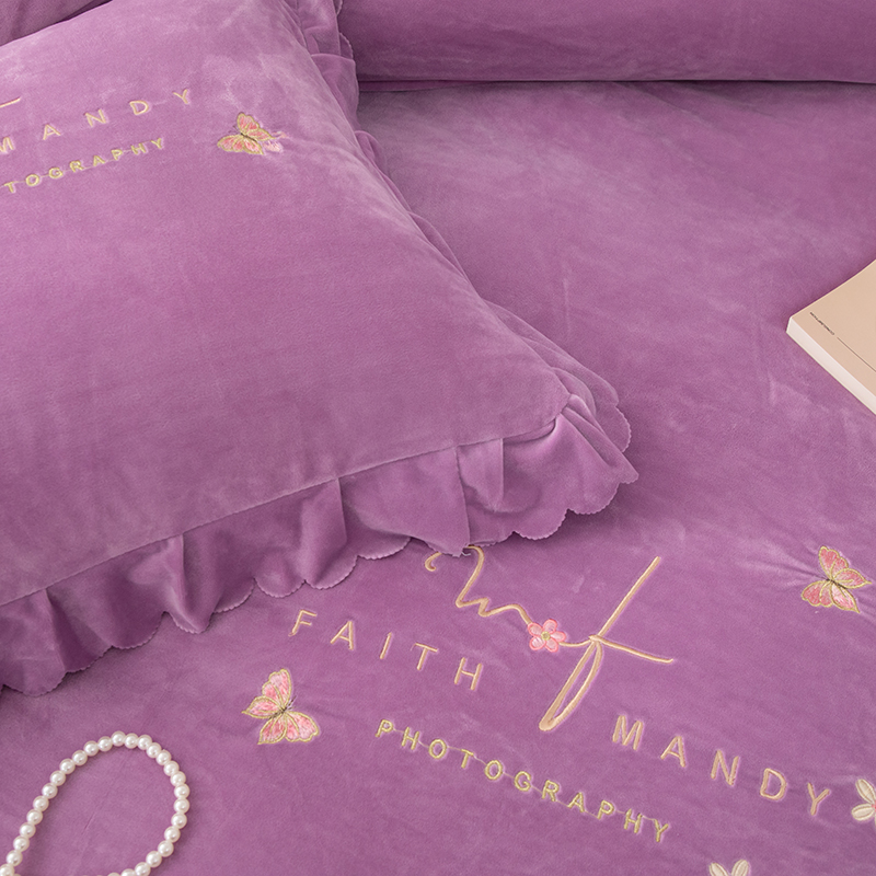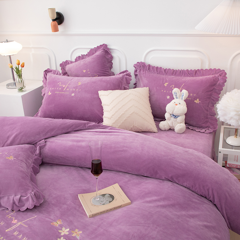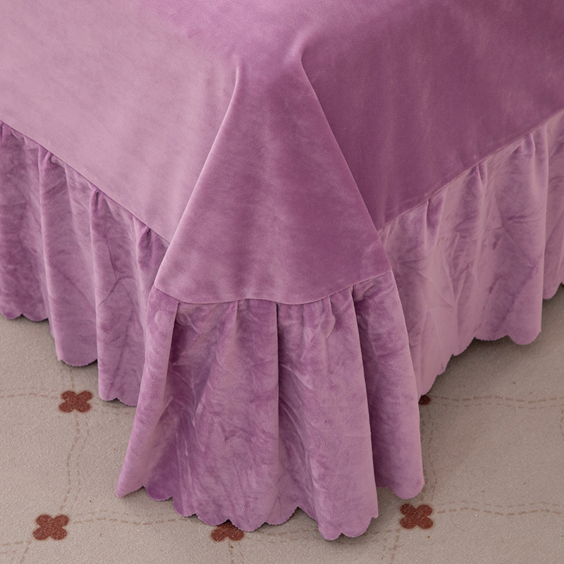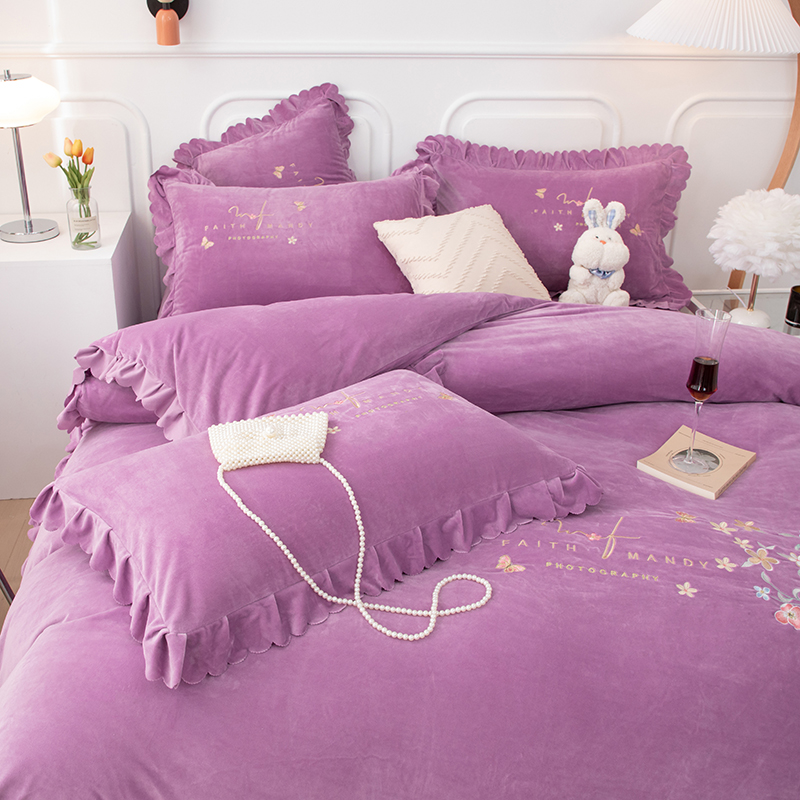 优姿家纺 2024新品8.5斤德芙绒韩版床裙绣花保暖四件套 今生有约紫色