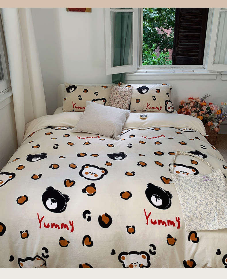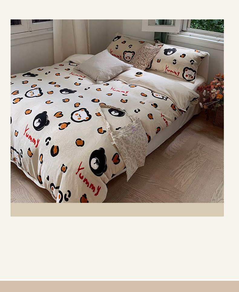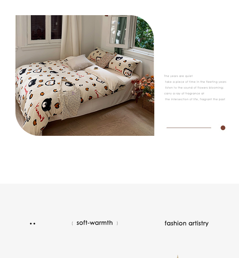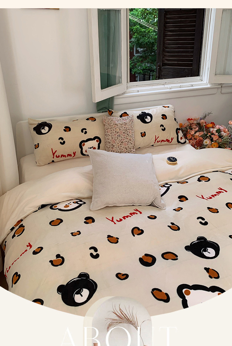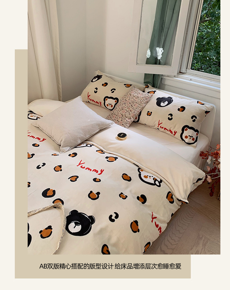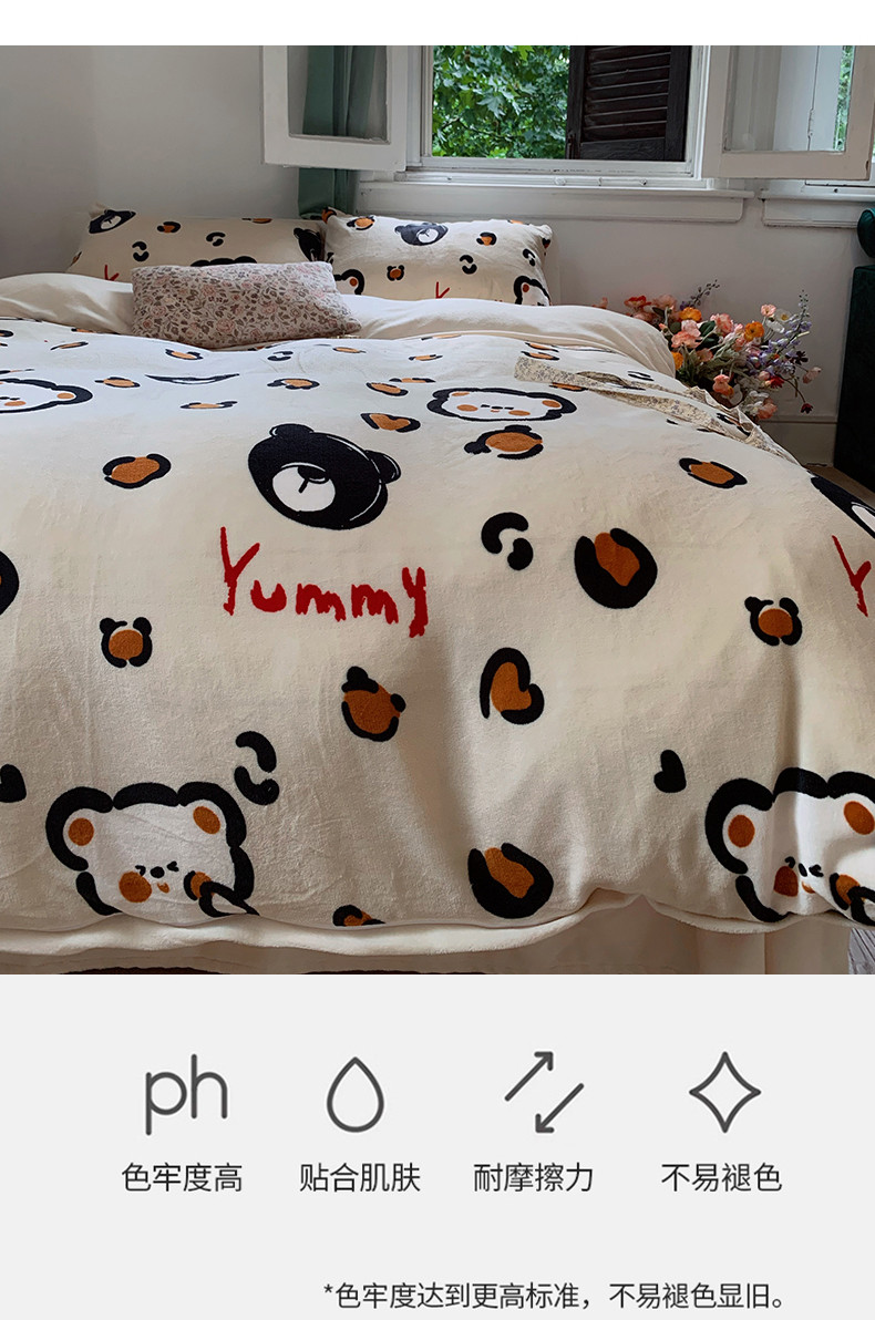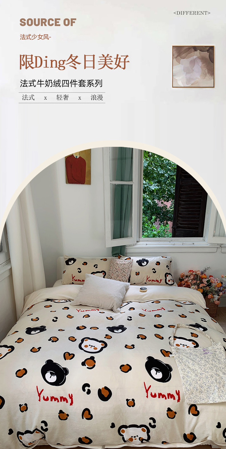 商品名称:花沐 2023新款冬季复古小法式牛奶绒四件套 点点熊