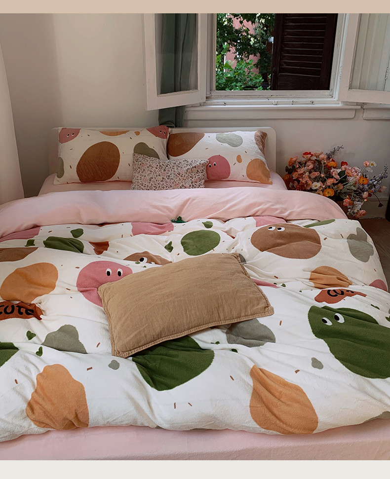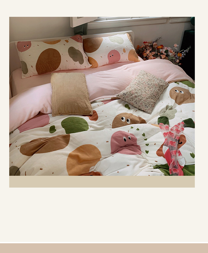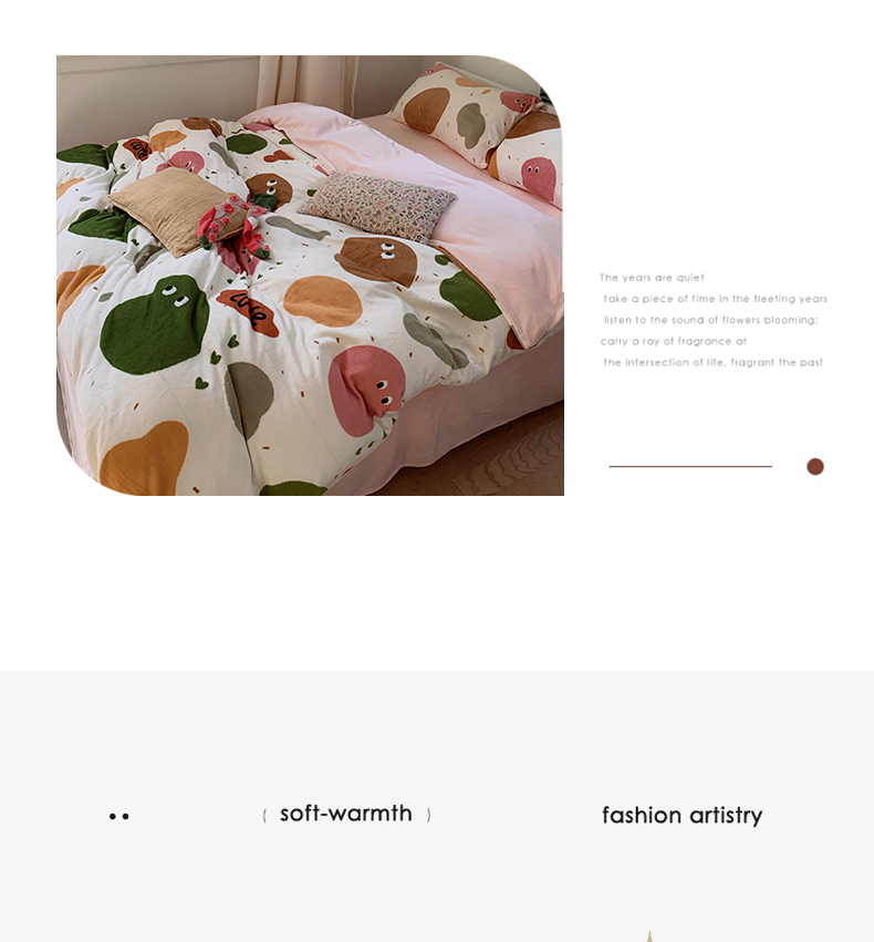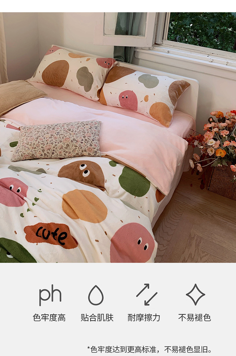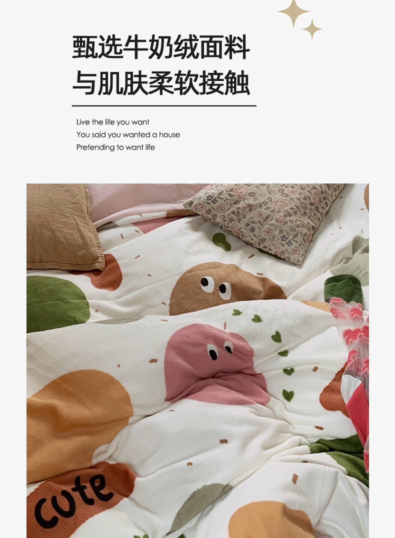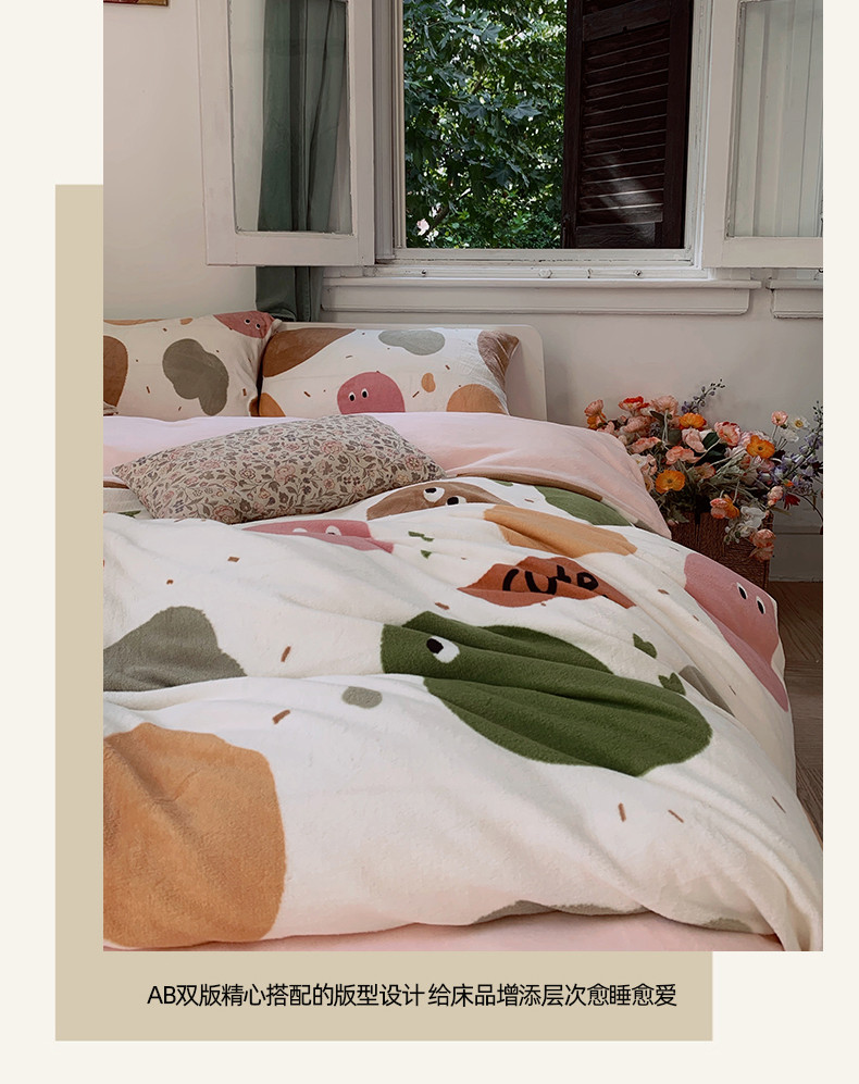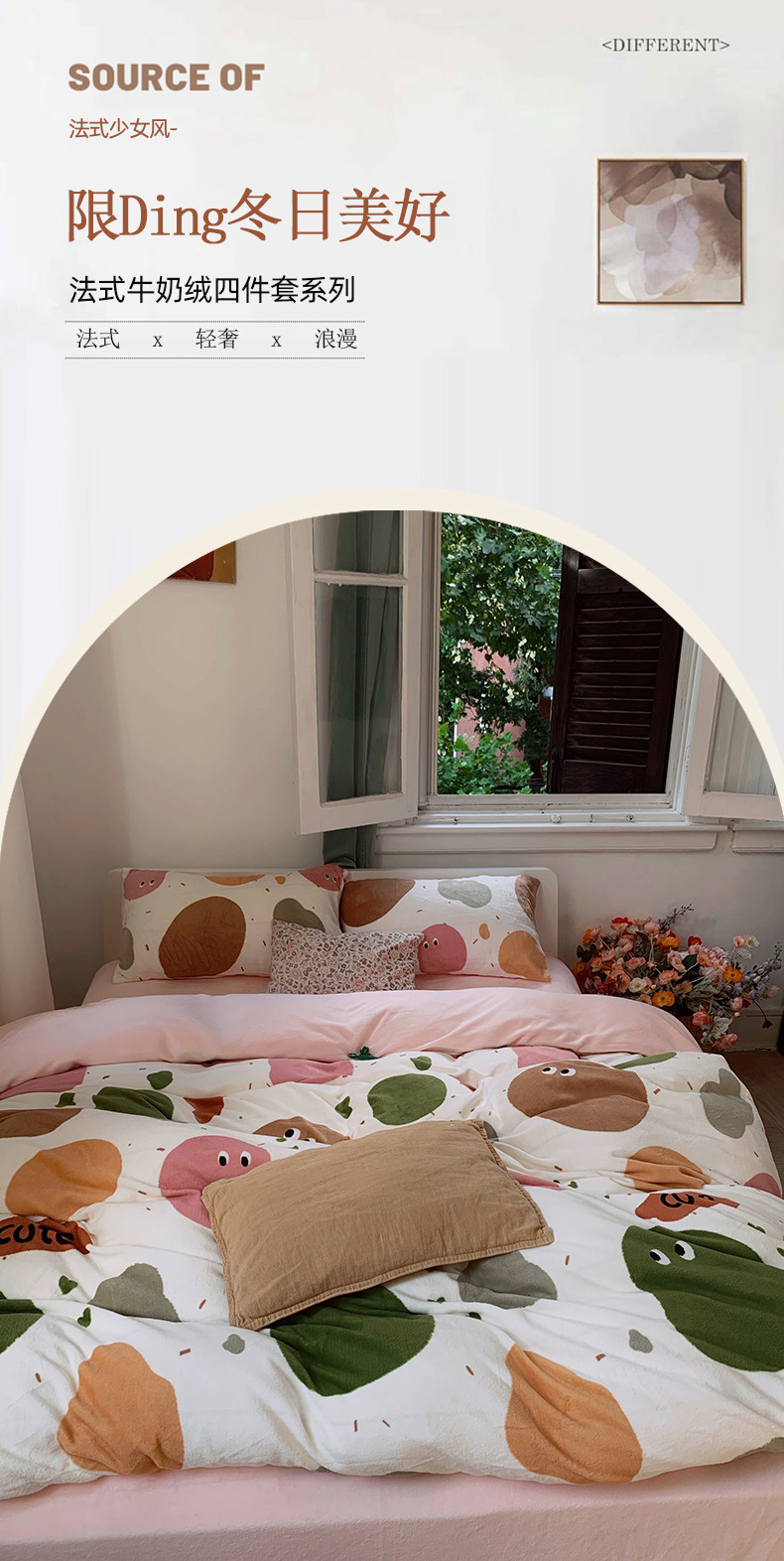 (总)花沐 2023新款冬季复古小法式牛奶绒四件套,爱的心心,大樱桃,点点熊,红兔小姐,花花同学,咖兔先生,菱形格,绿叶仙踪,米驼熊头,条条粉色,兔兔宝宝,五彩圈圈