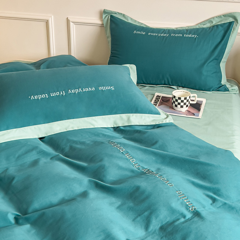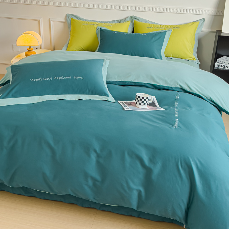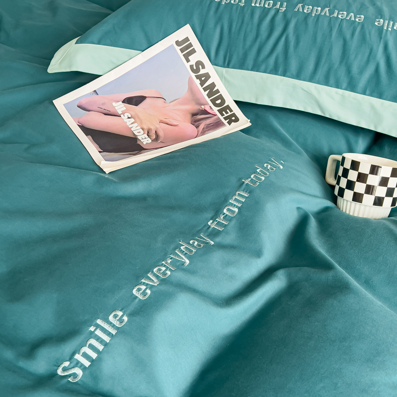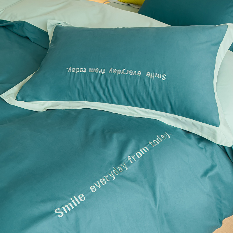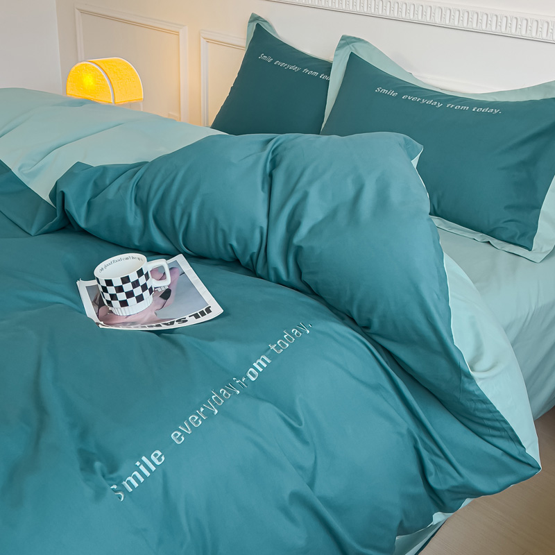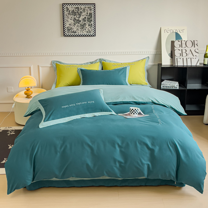 嘉汀兰 2023秋冬新品60支加厚轻奢磨毛撞色绣花四件套—暮里 深青色