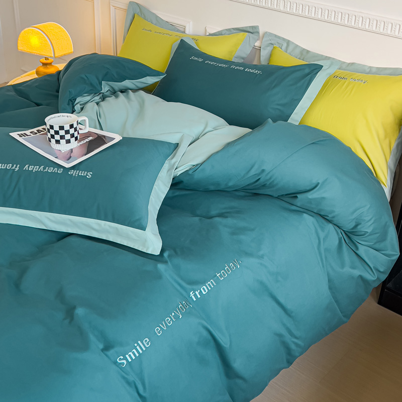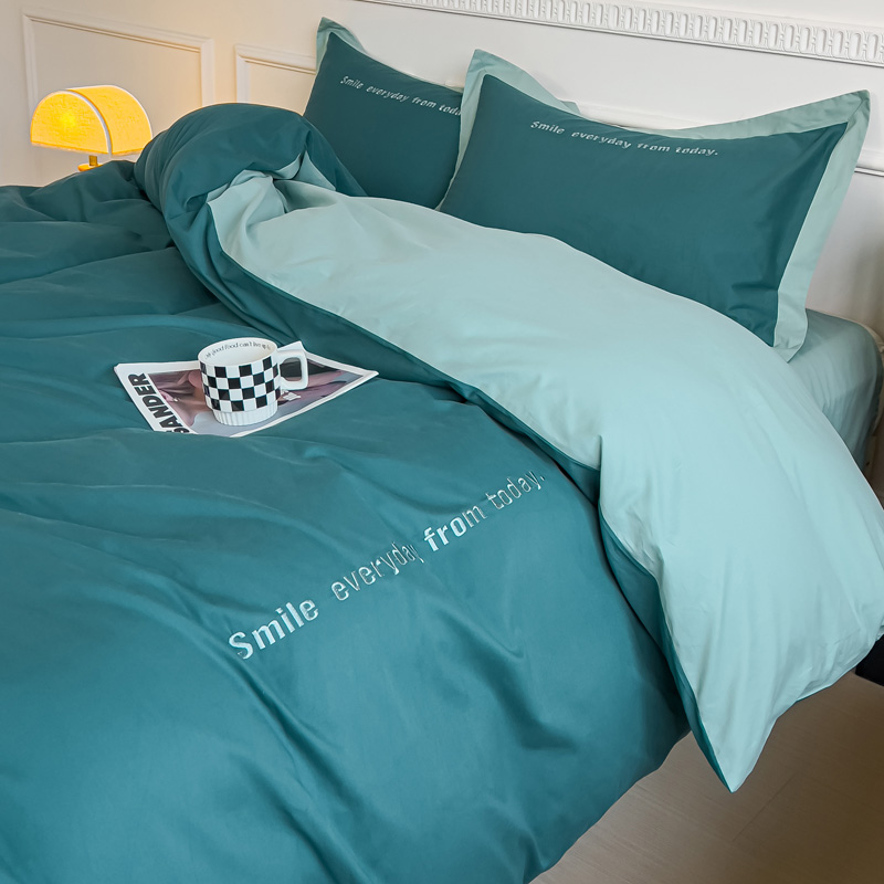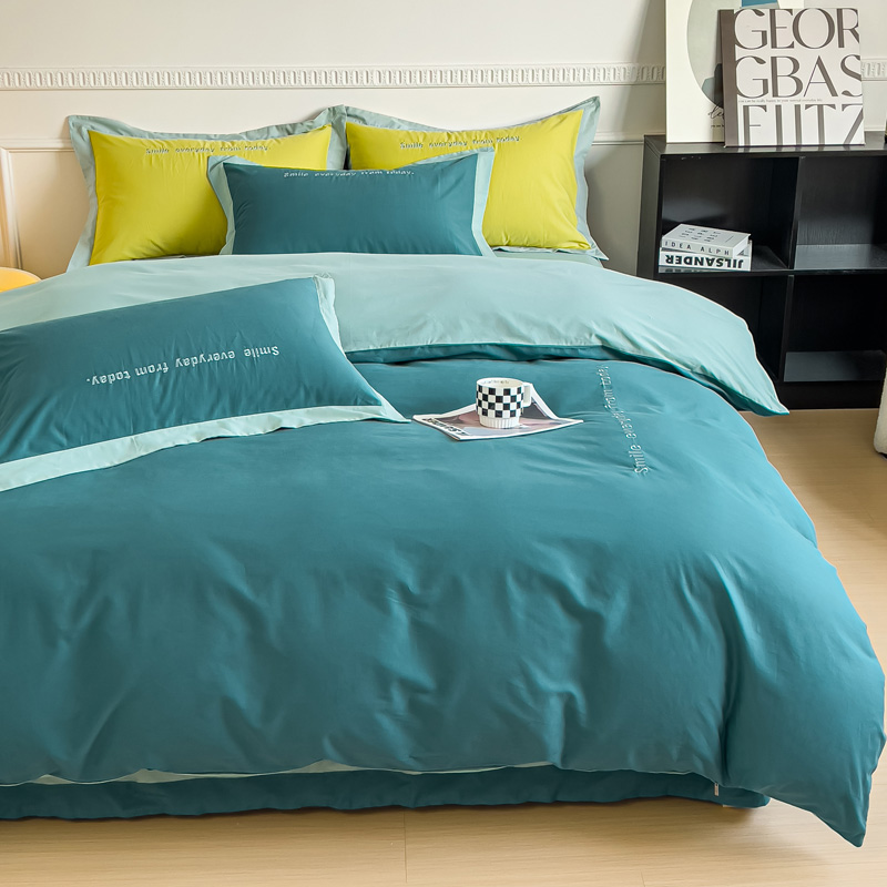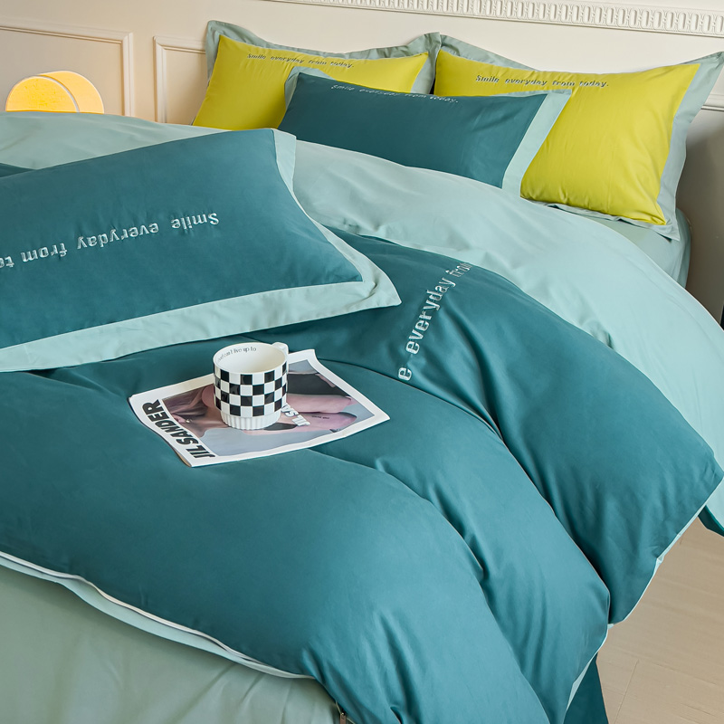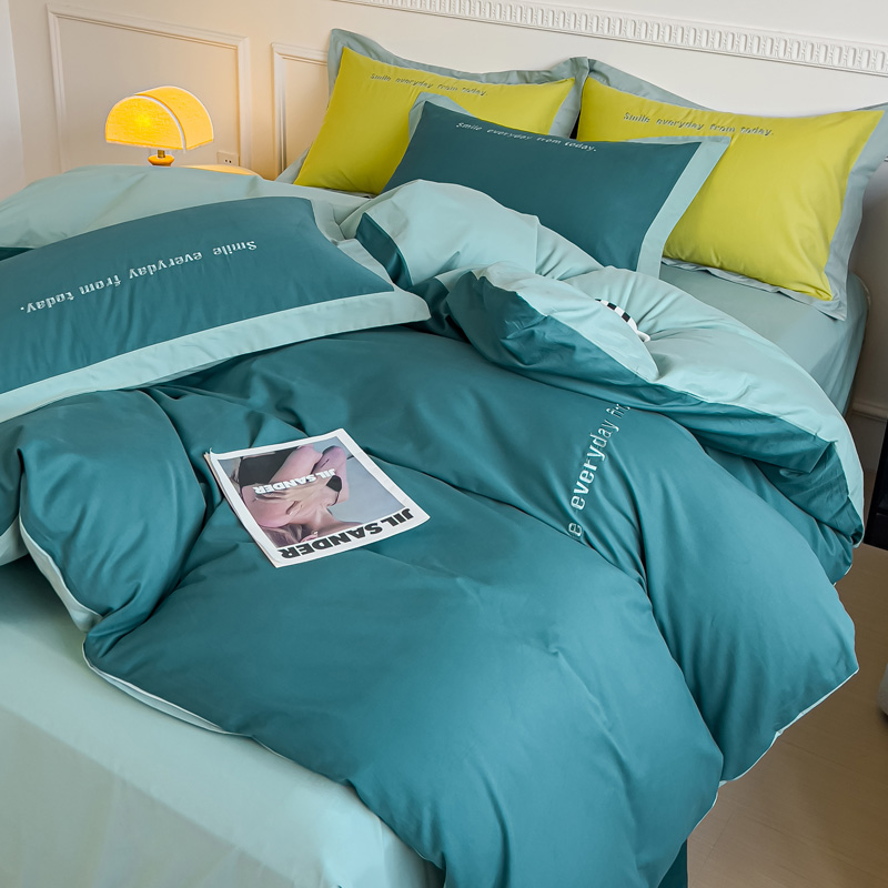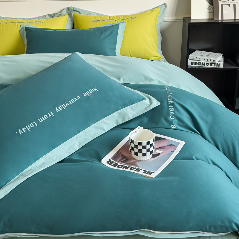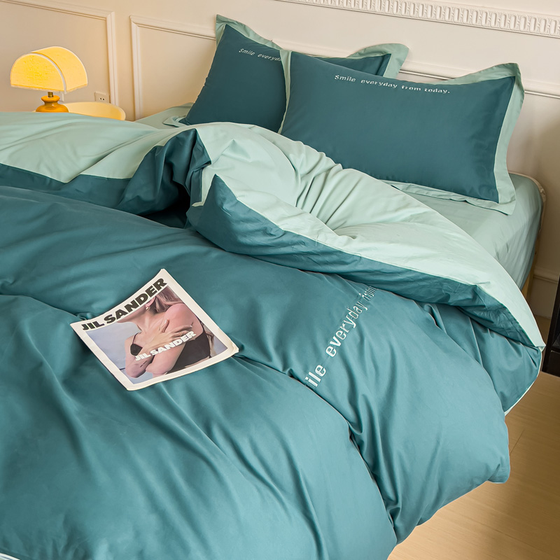 嘉汀兰 2023秋冬新品60支加厚轻奢磨毛撞色绣花四件套—暮里 深青色