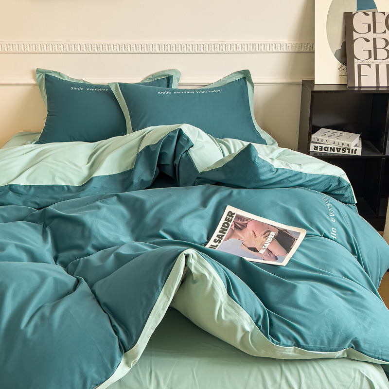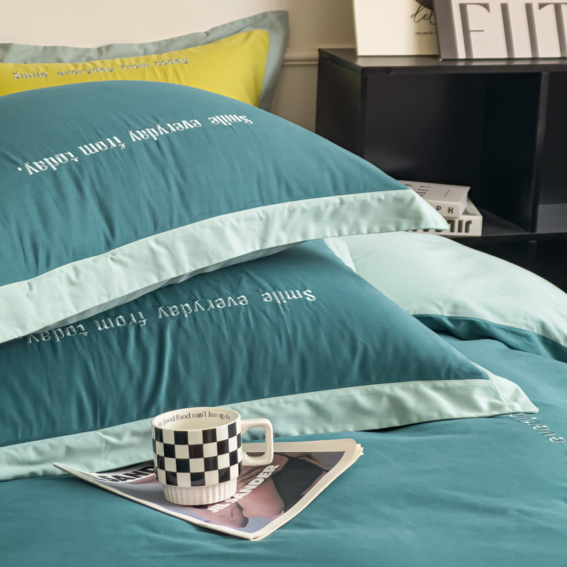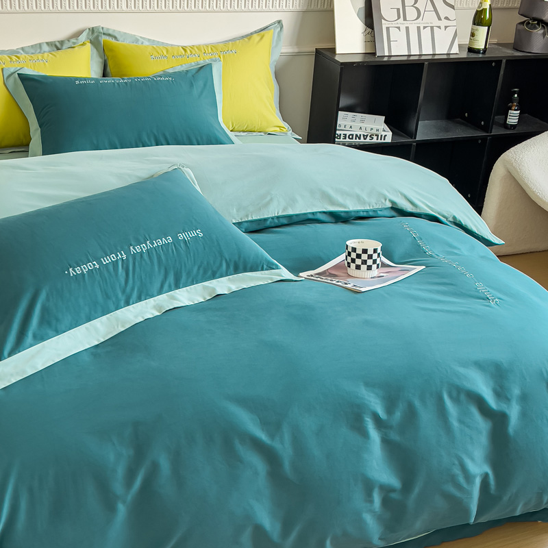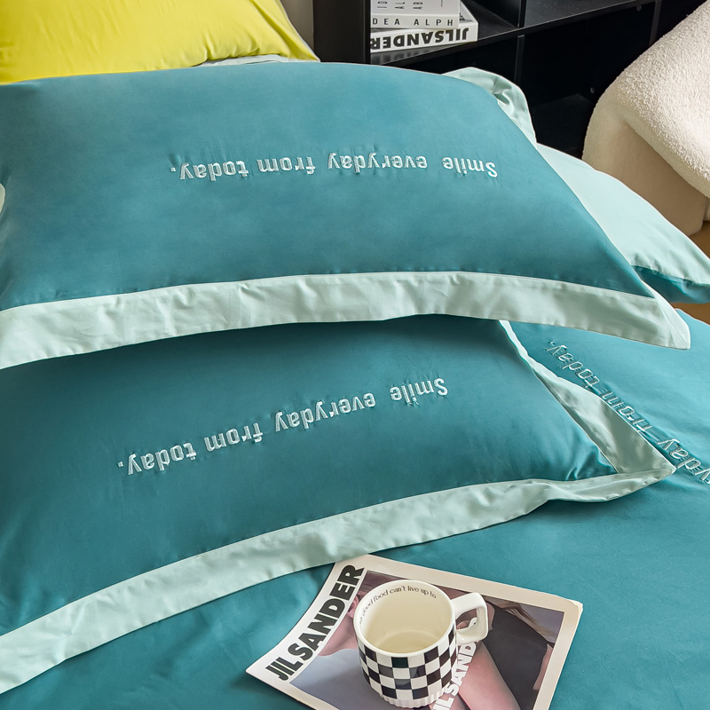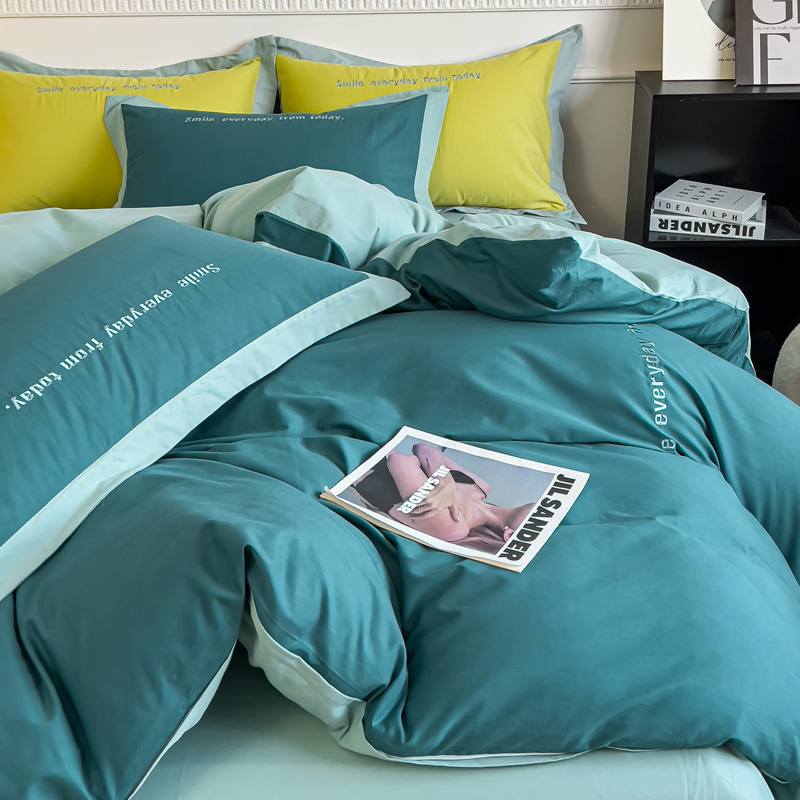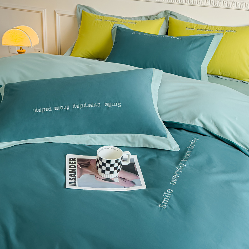 (总)嘉汀兰 2023新款60支全棉磨毛绣花撞色轻奢四件套—暮里,粉色,红灰色,芥绿色,浅灰色,深青色