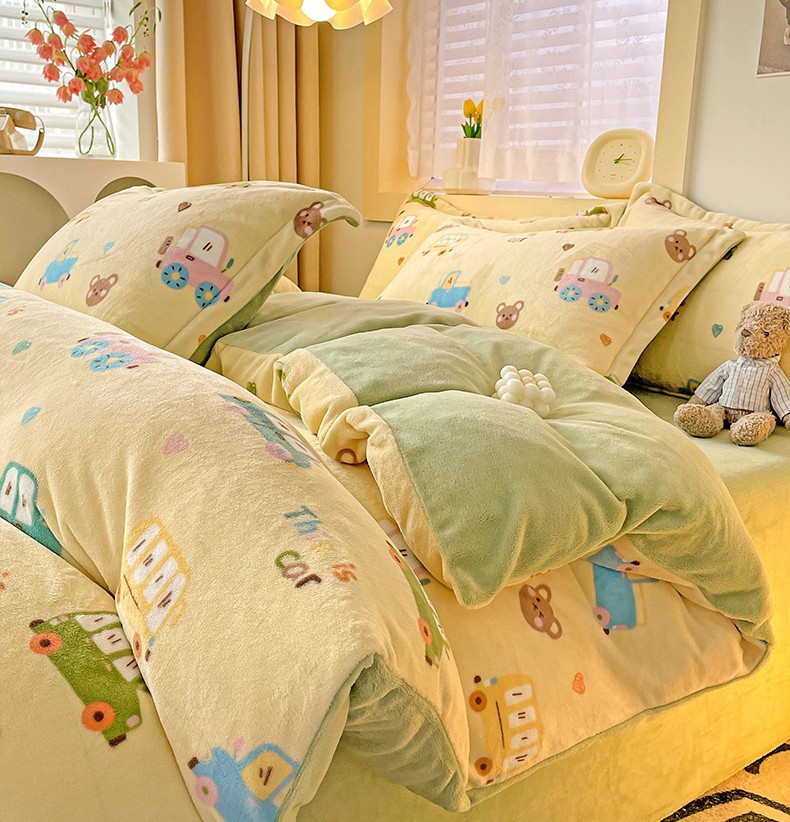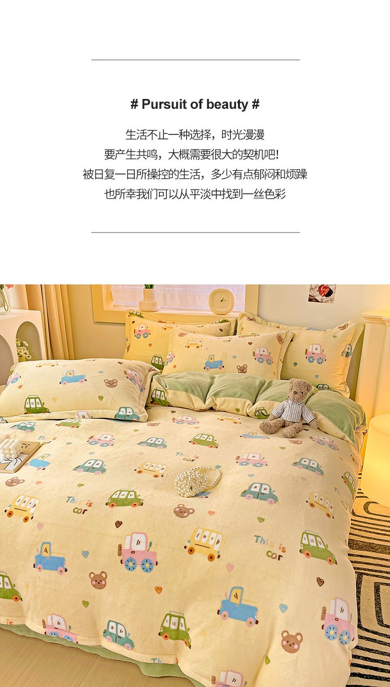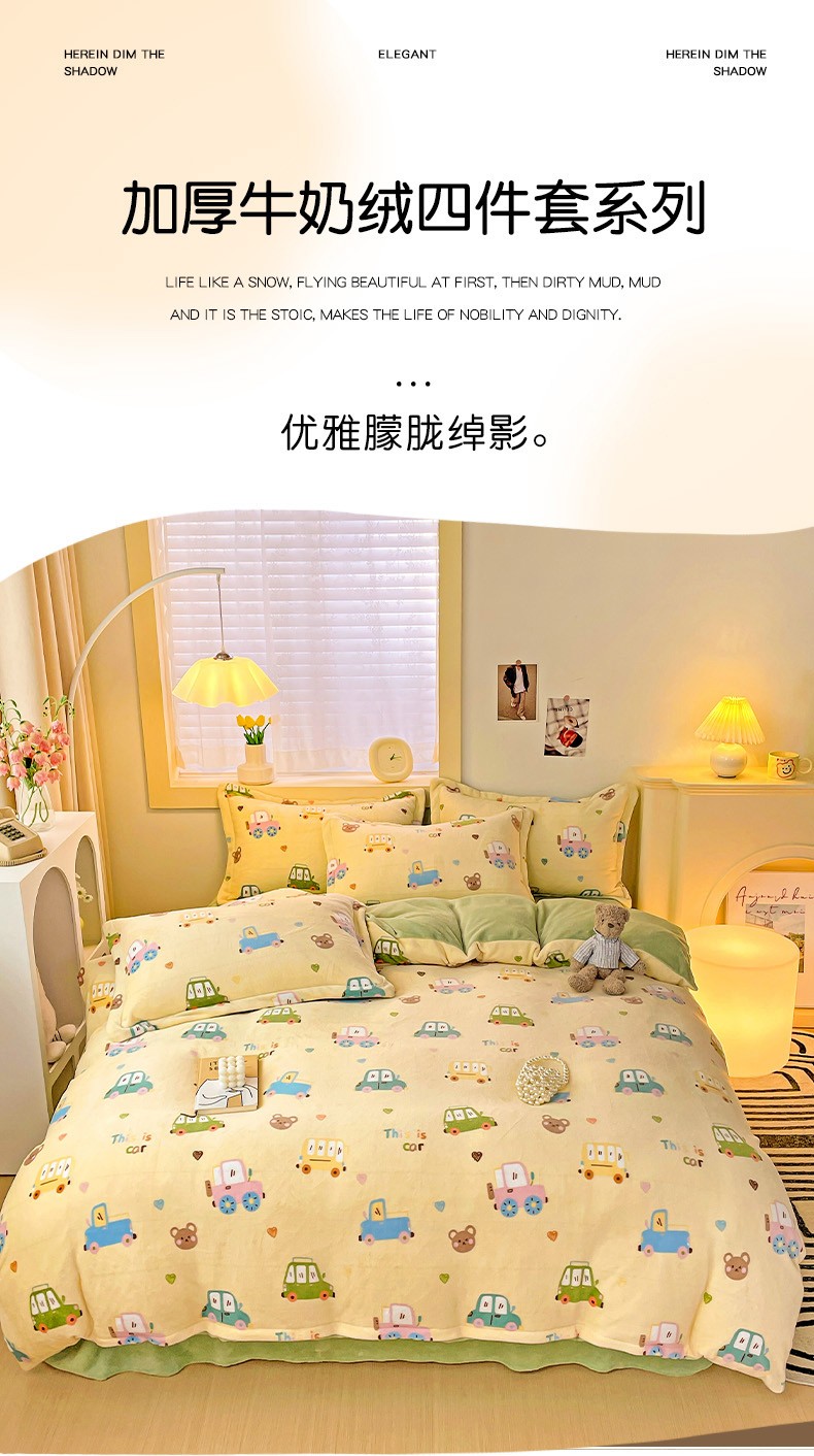当前位置: 91家纺网 > 商品网购 > 床品套件 > 四件套 > 牛奶绒四件套 > 畅畅家纺 2023新款活性印花小清新AB版加厚高克重法莱绒牛奶绒四件套 汽车乐园