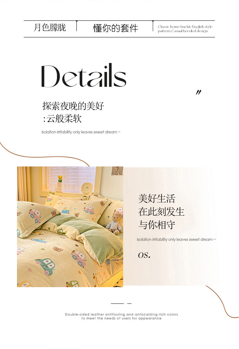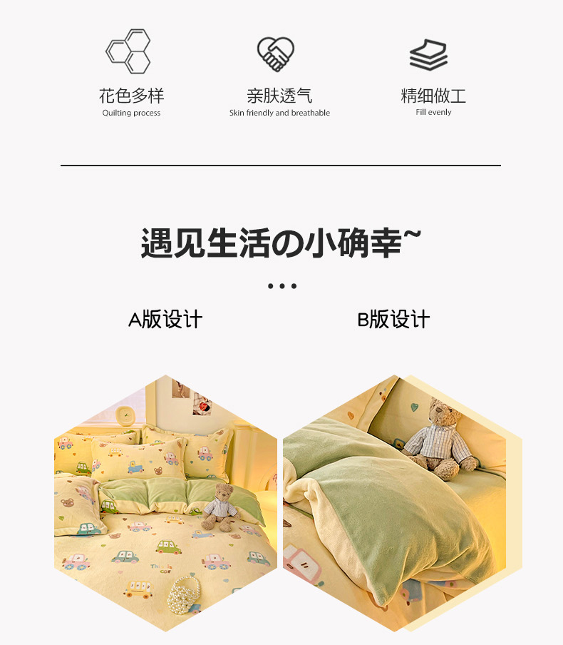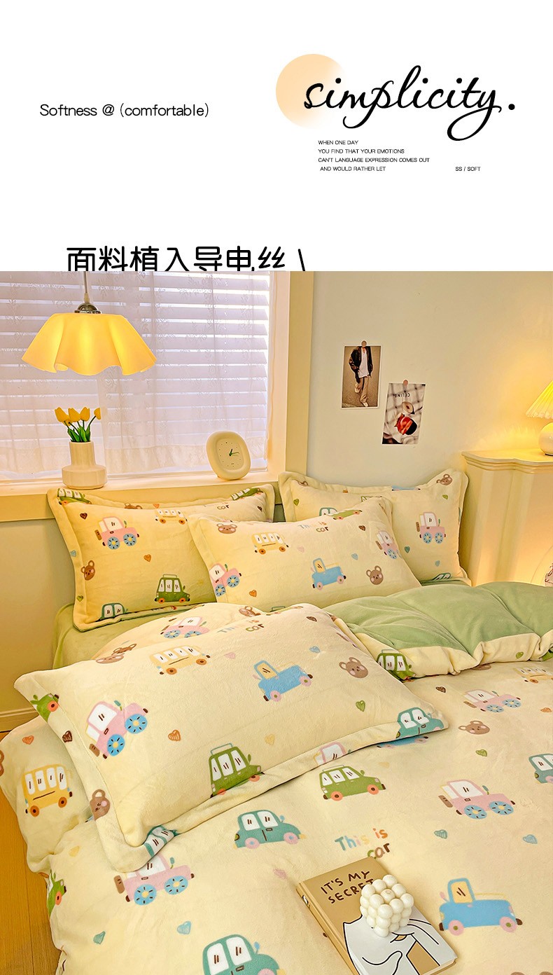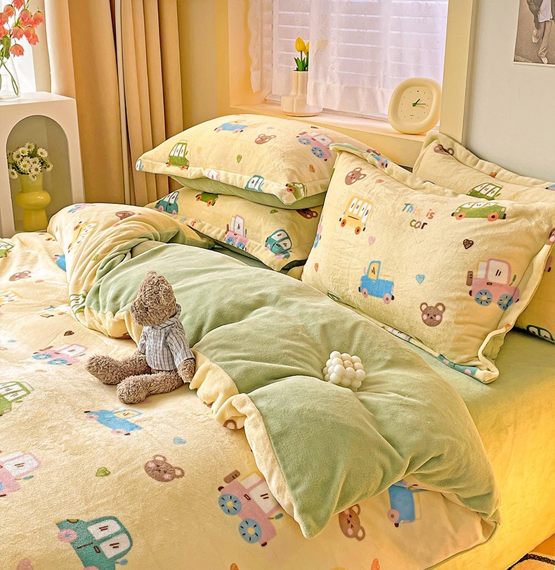 当前位置: 91家纺网 > 商品网购 > 床品套件 > 四件套 > 牛奶绒四件套 > 畅畅家纺 2023新款活性印花小清新AB版加厚高克重法莱绒牛奶绒四件套 汽车乐园