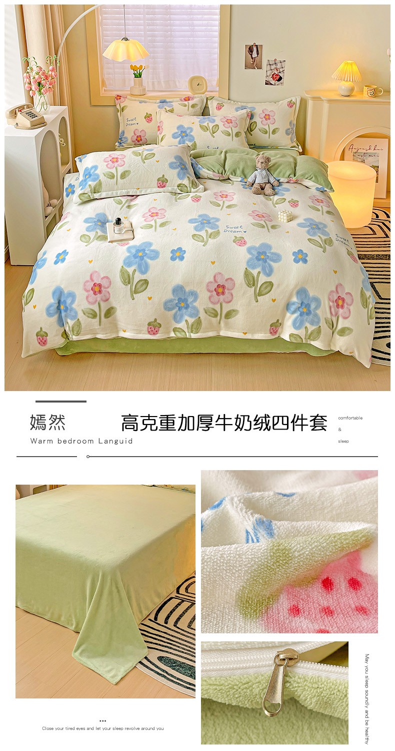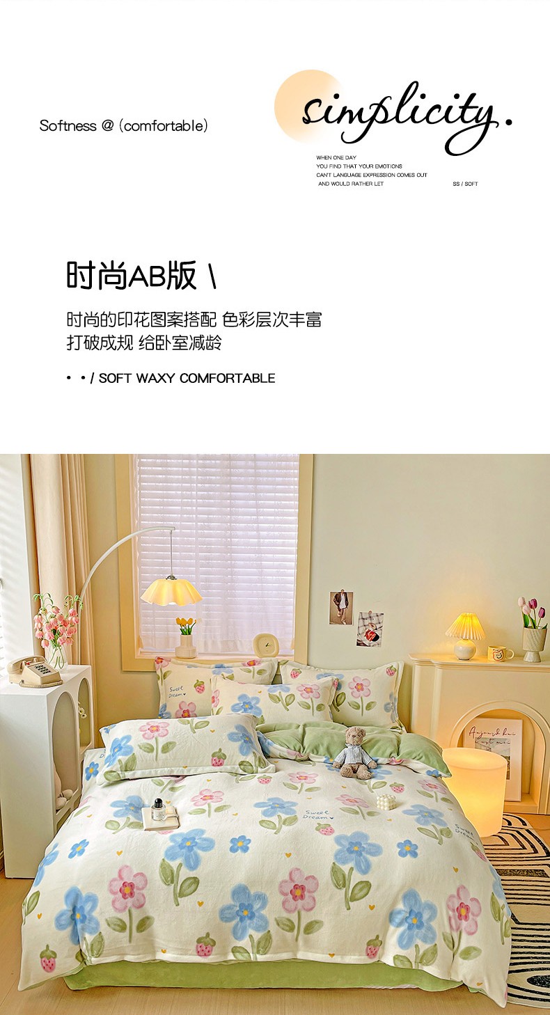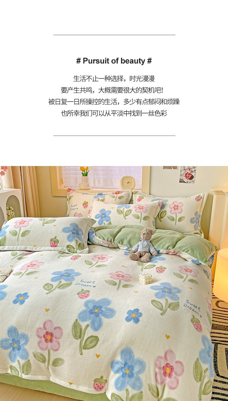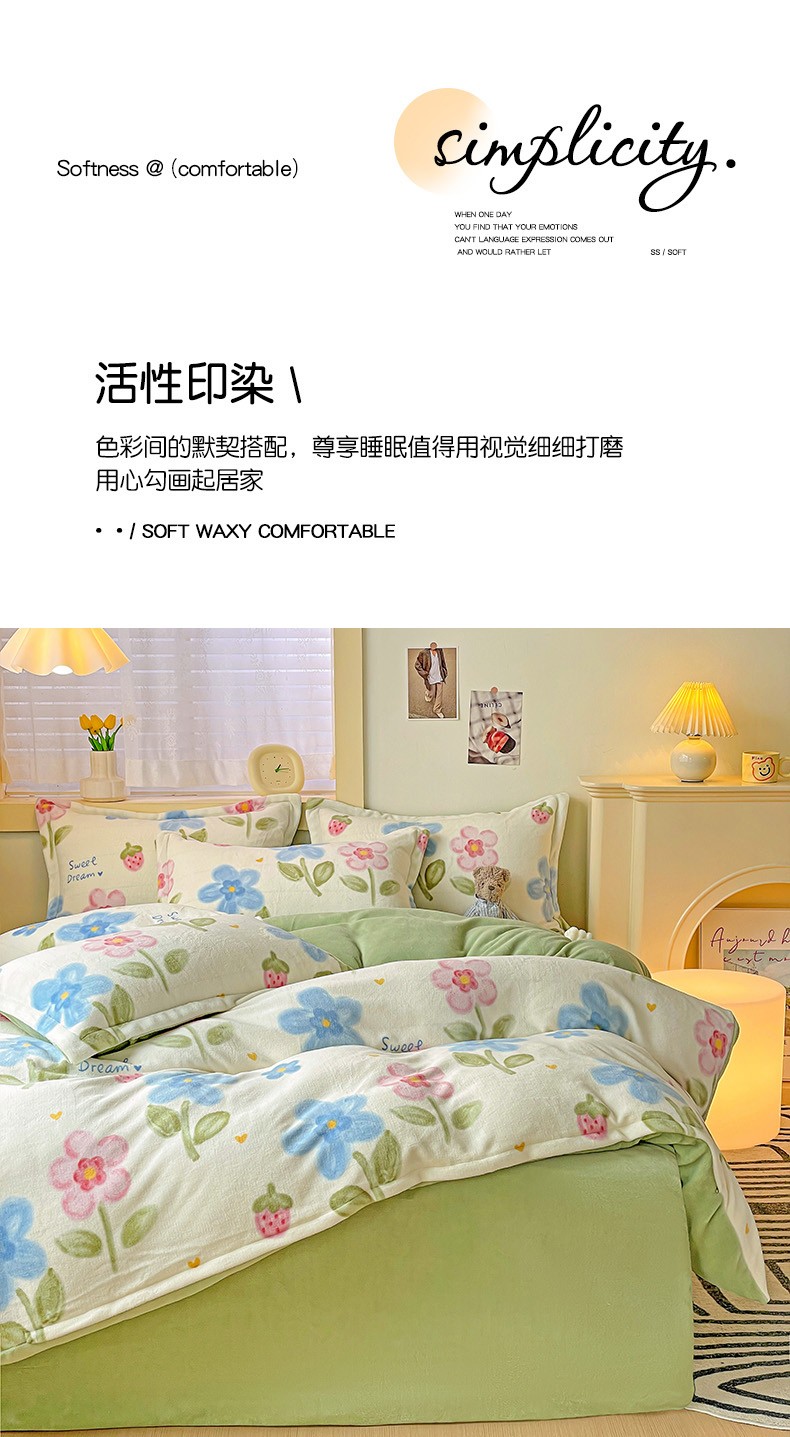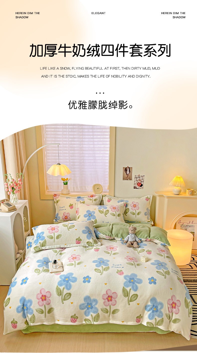当前位置: 91家纺网 > 商品网购 > 床品套件 > 四件套 > 牛奶绒四件套 > 畅畅家纺 2023新款活性印花小清新AB版加厚高克重法莱绒牛奶绒四件套 嫣然