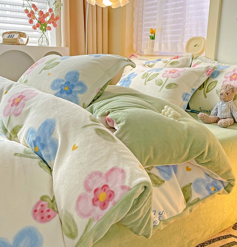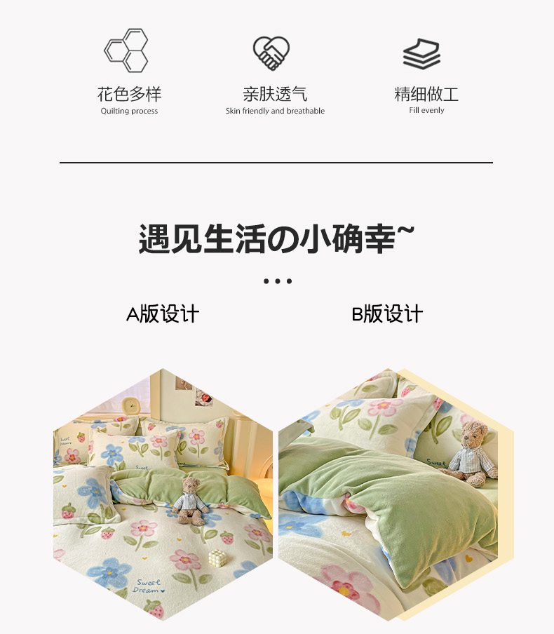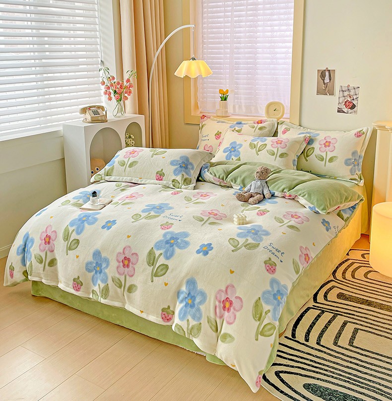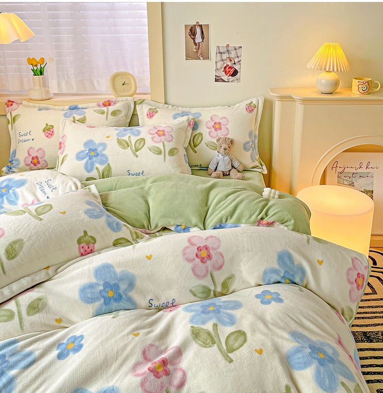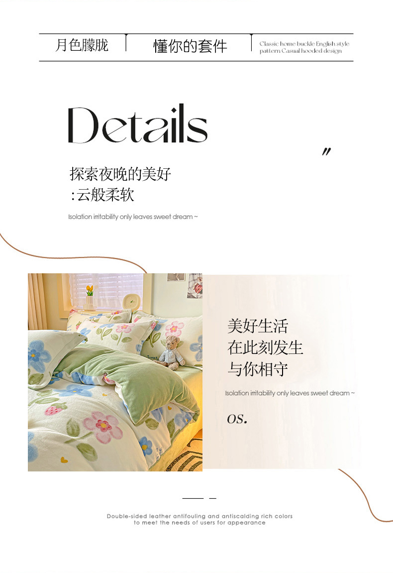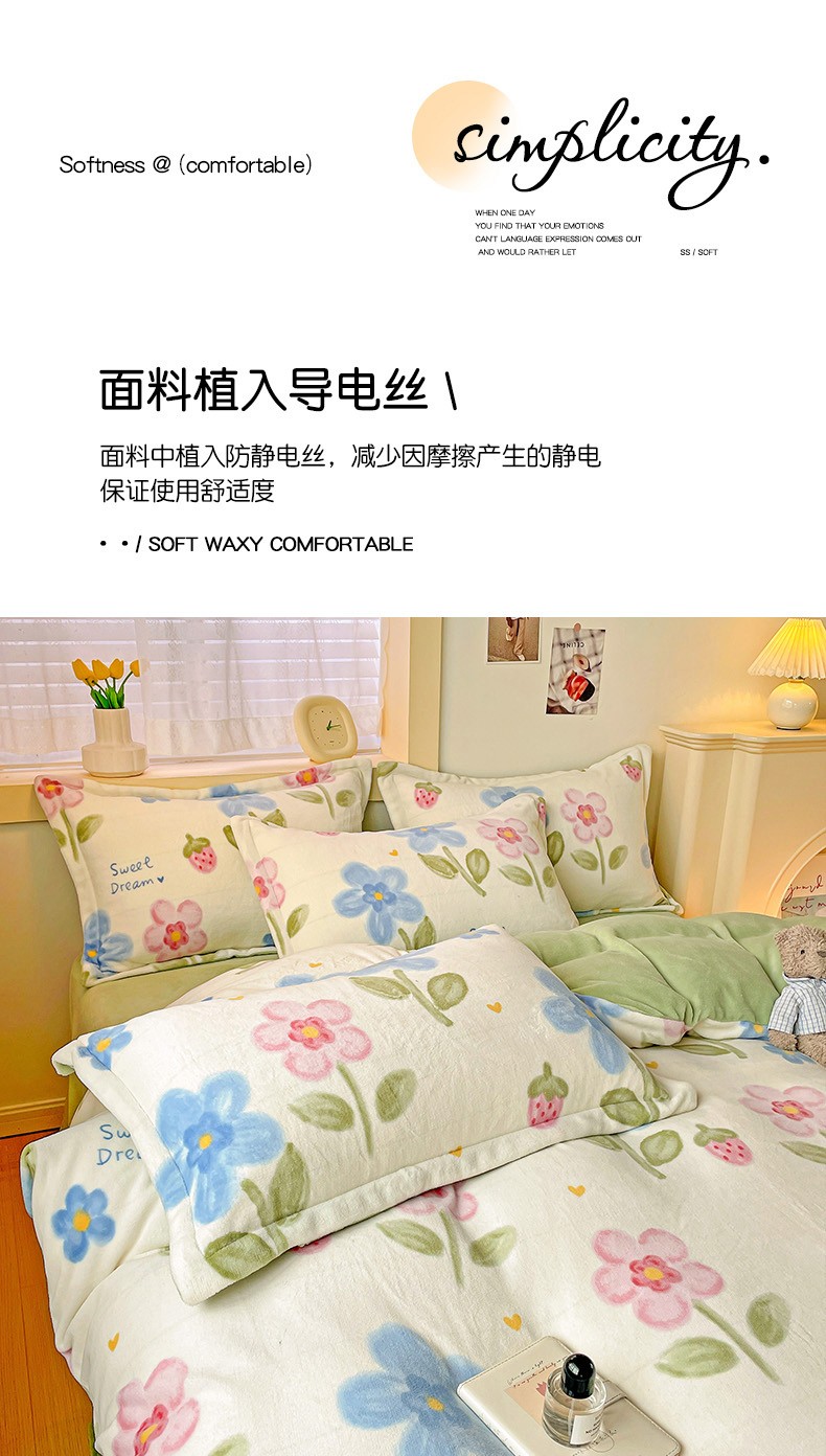 当前位置: 91家纺网 > 商品网购 > 床品套件 > 四件套 > 牛奶绒四件套 > 畅畅家纺 2023新款活性印花小清新AB版加厚高克重法莱绒牛奶绒四件套 嫣然