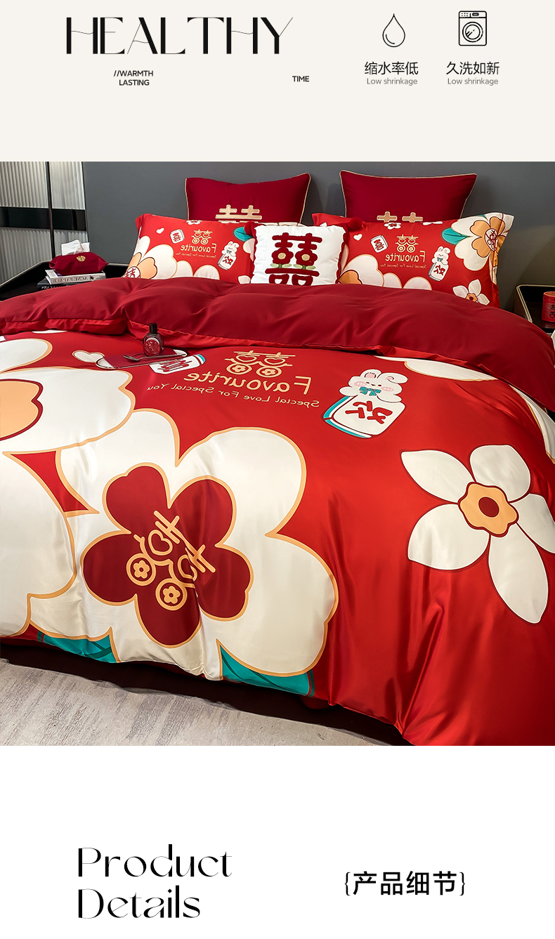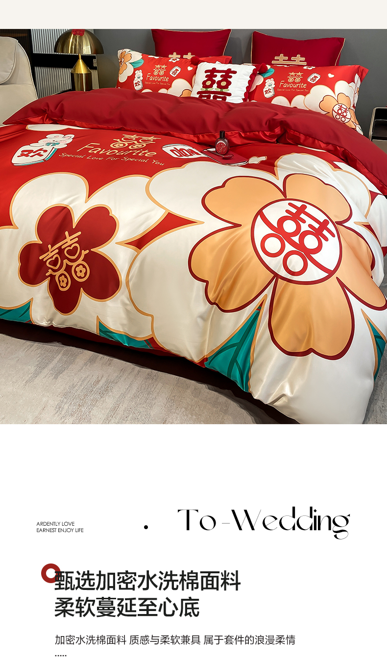 (总)花愿(原花纪) 水洗棉刺绣婚庆四件套,喜上加喜,禧悦,永结同心