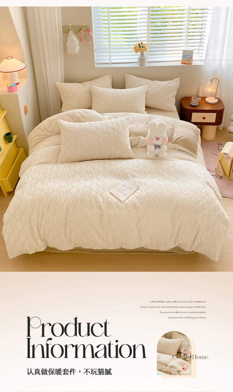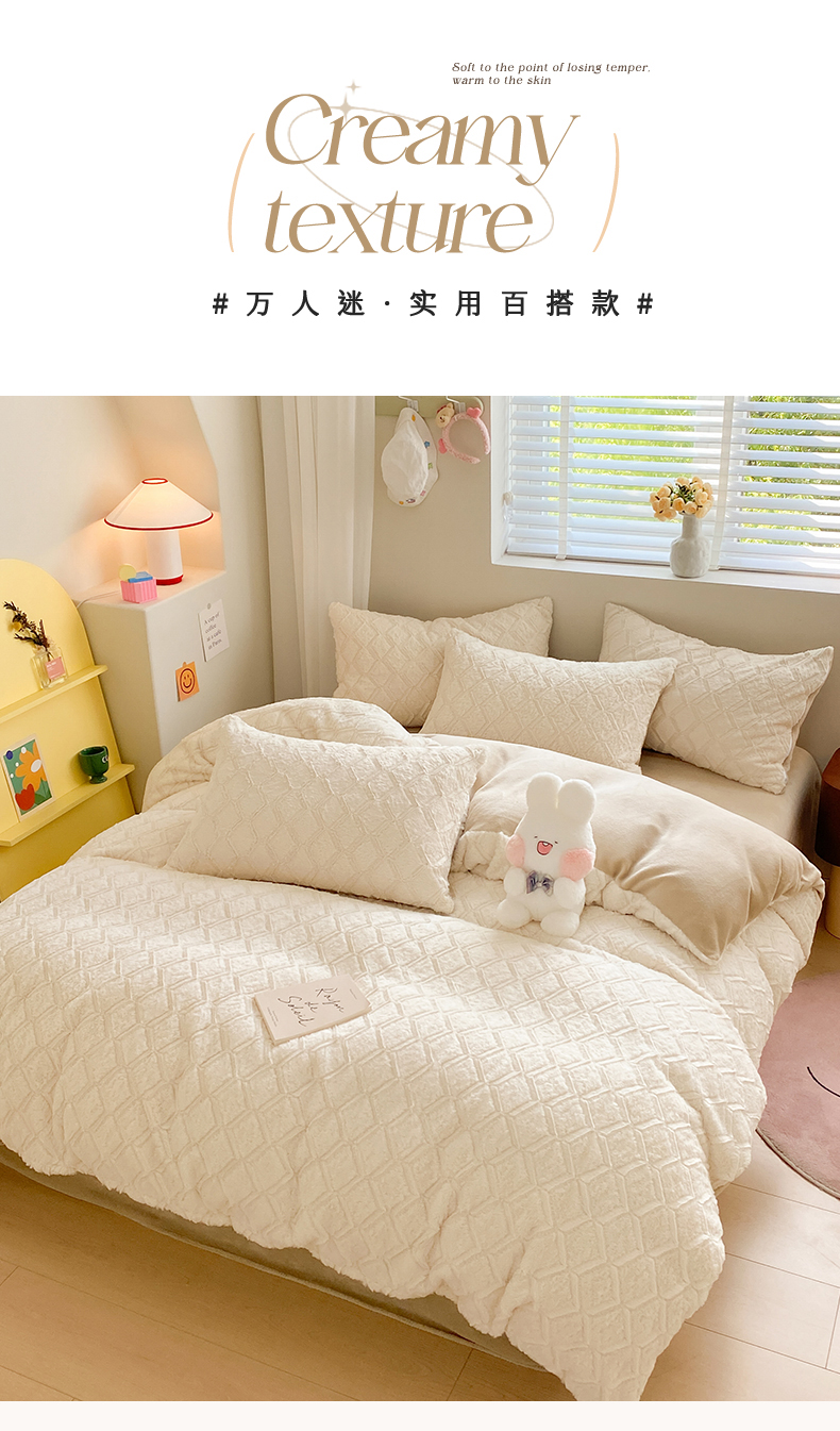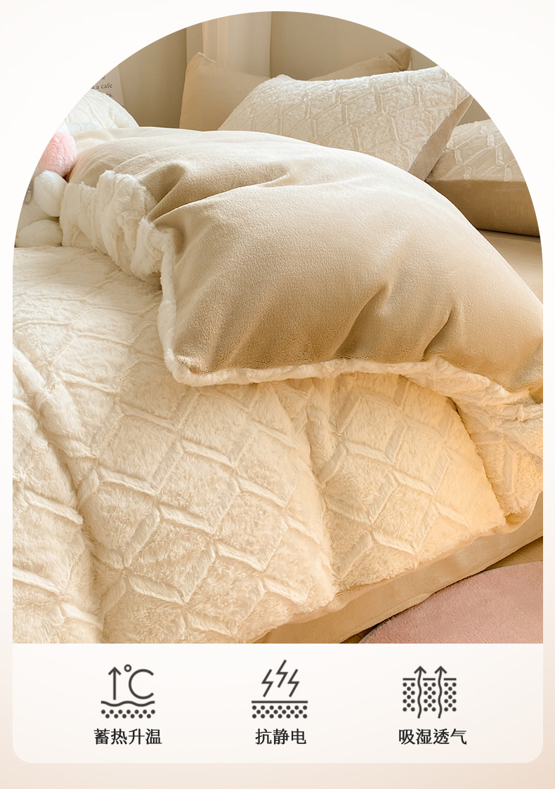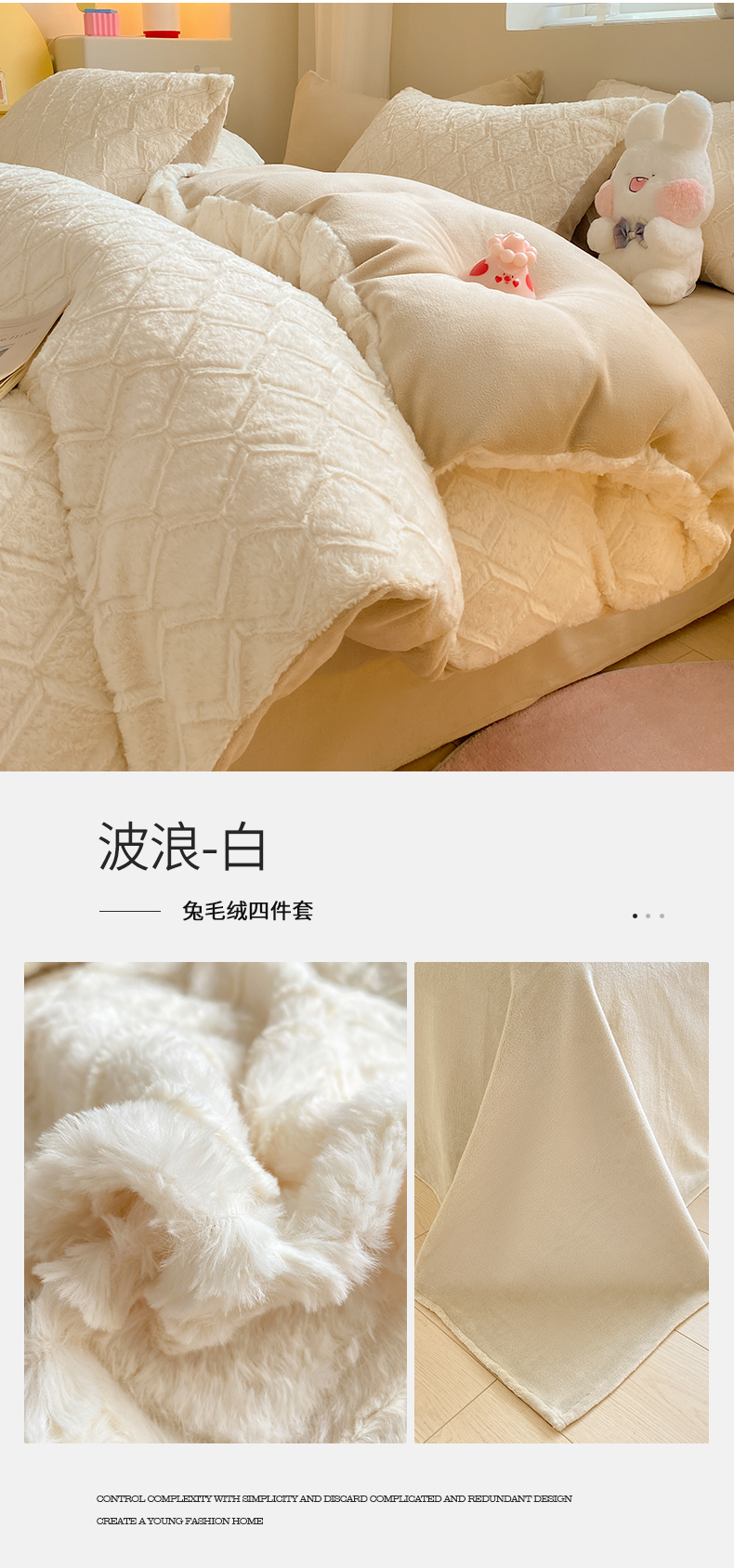 商品名称:名兮 2023新款兔毛绒加厚四件套 波浪-白