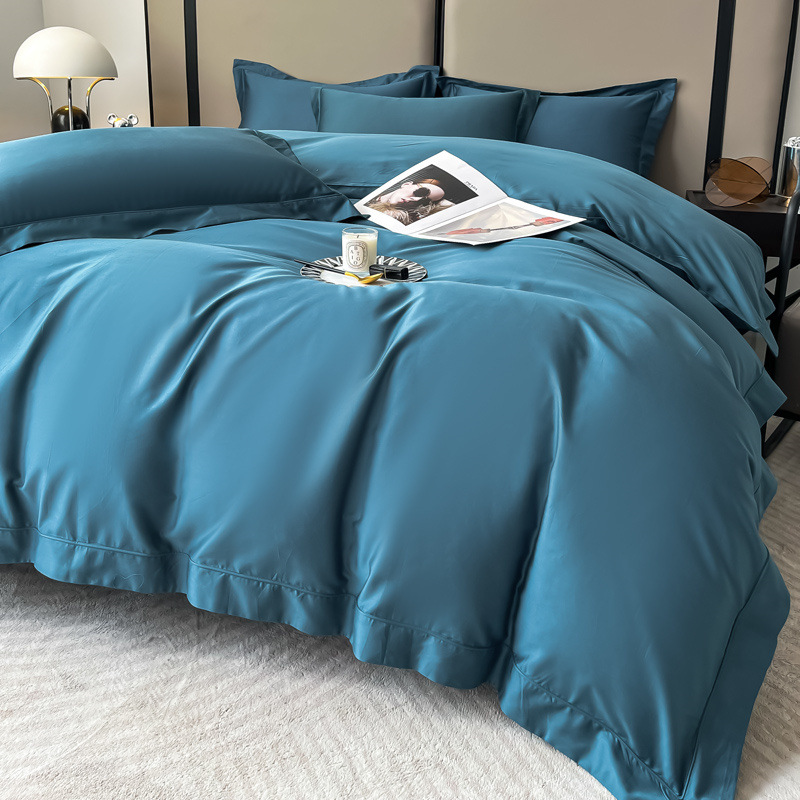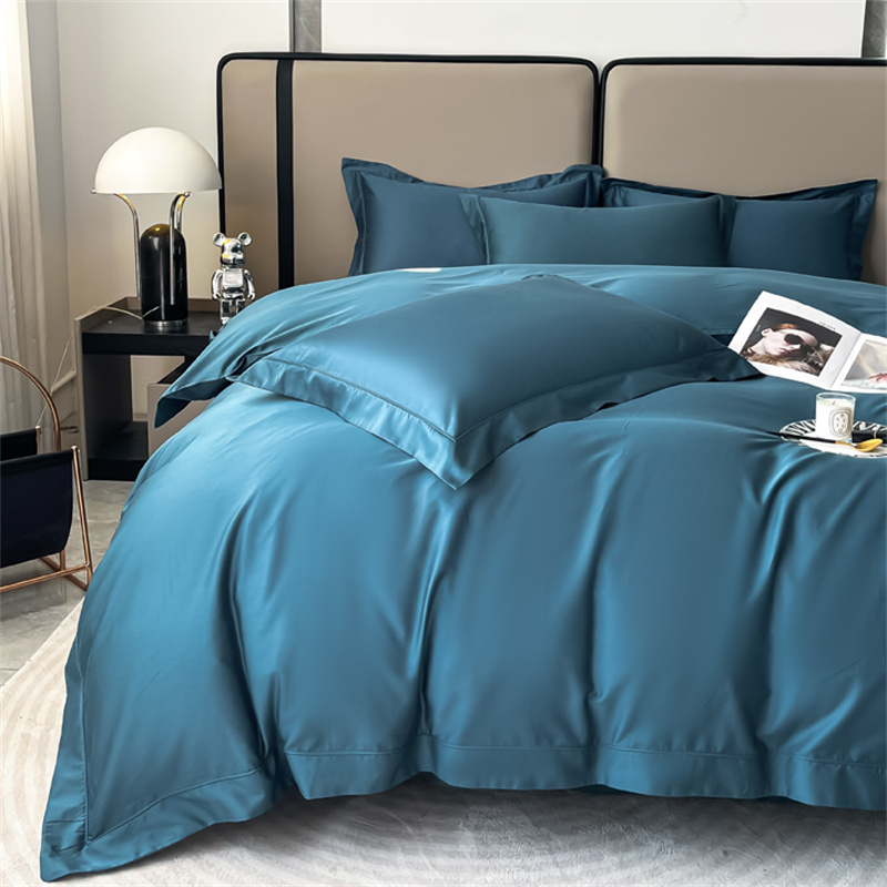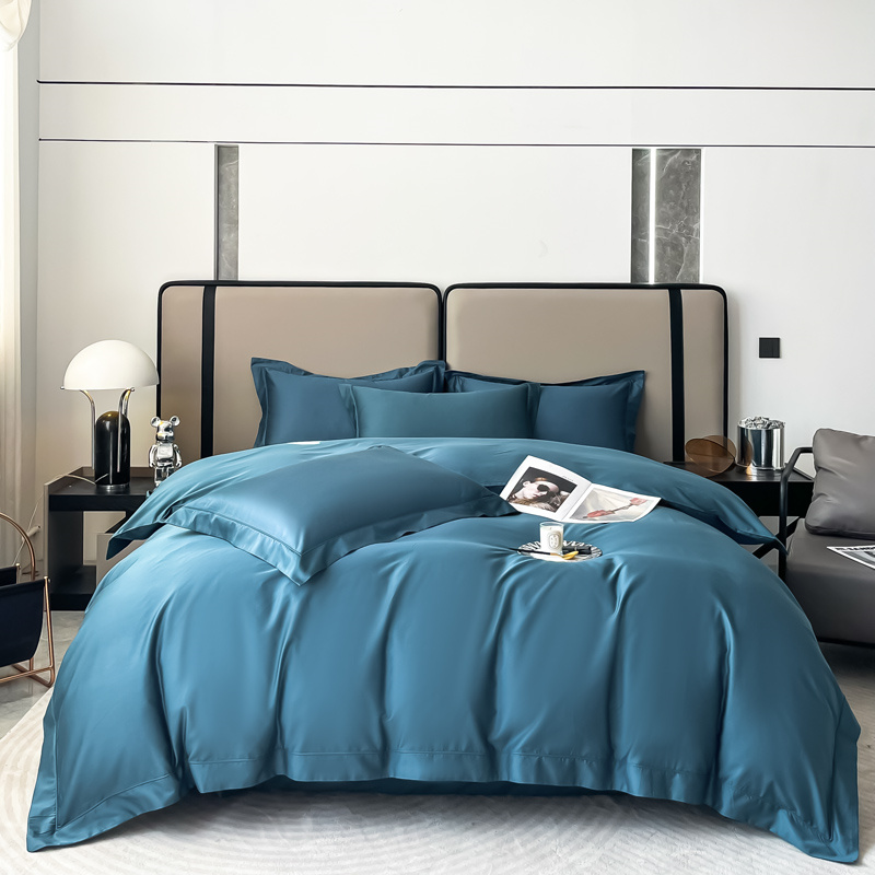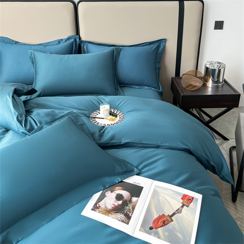 嘉汀兰家居 2023秋冬新品100支双股长绒棉埋绳纯色四件套-卡西欧系列 蓝绿