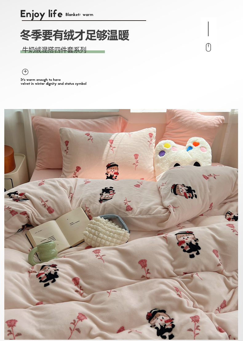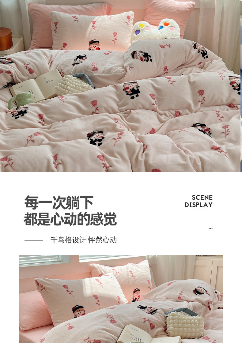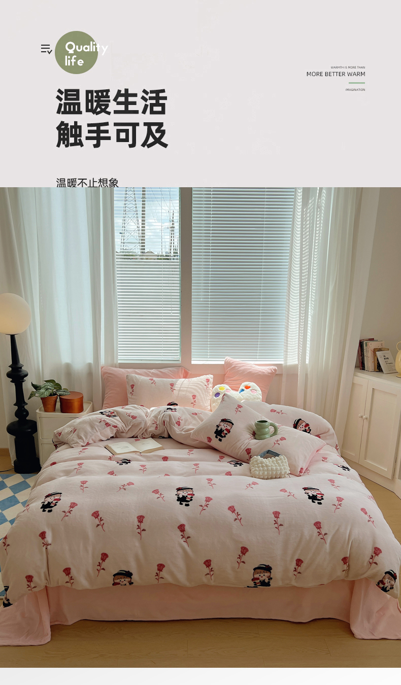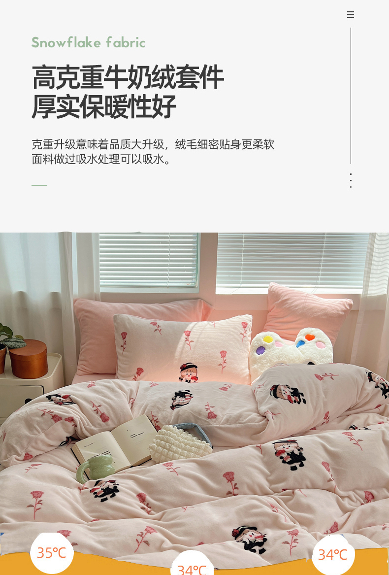 当前位置: 91家纺网 > 商品网购 > 床品套件 > 四件套 > 牛奶绒四件套 > 三朵家纺 2023年牛奶绒小清新系列四件套 赫本女孩