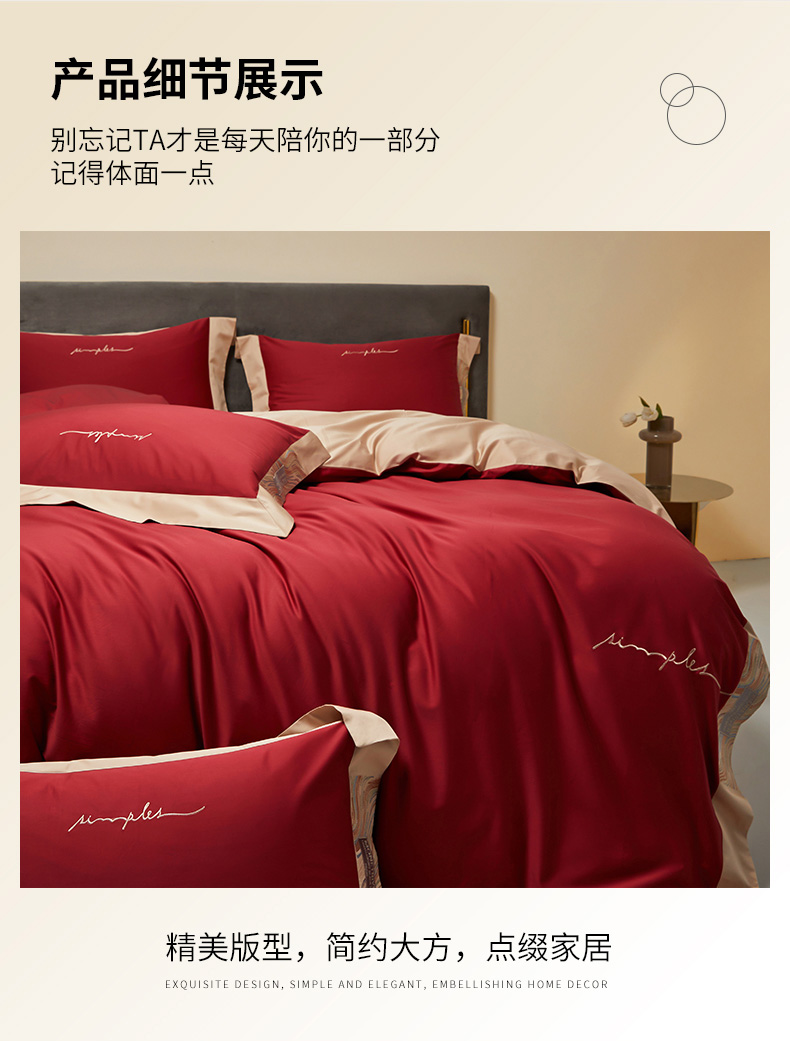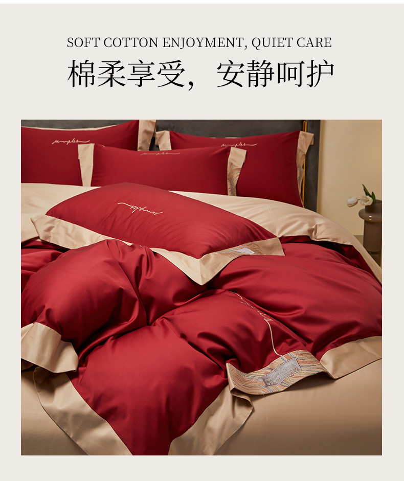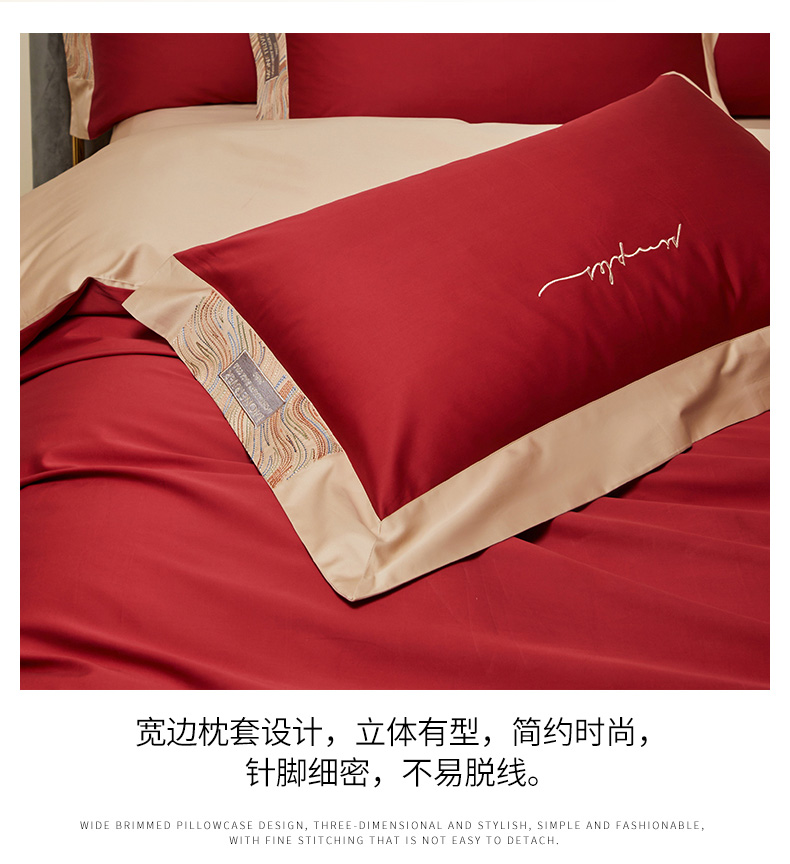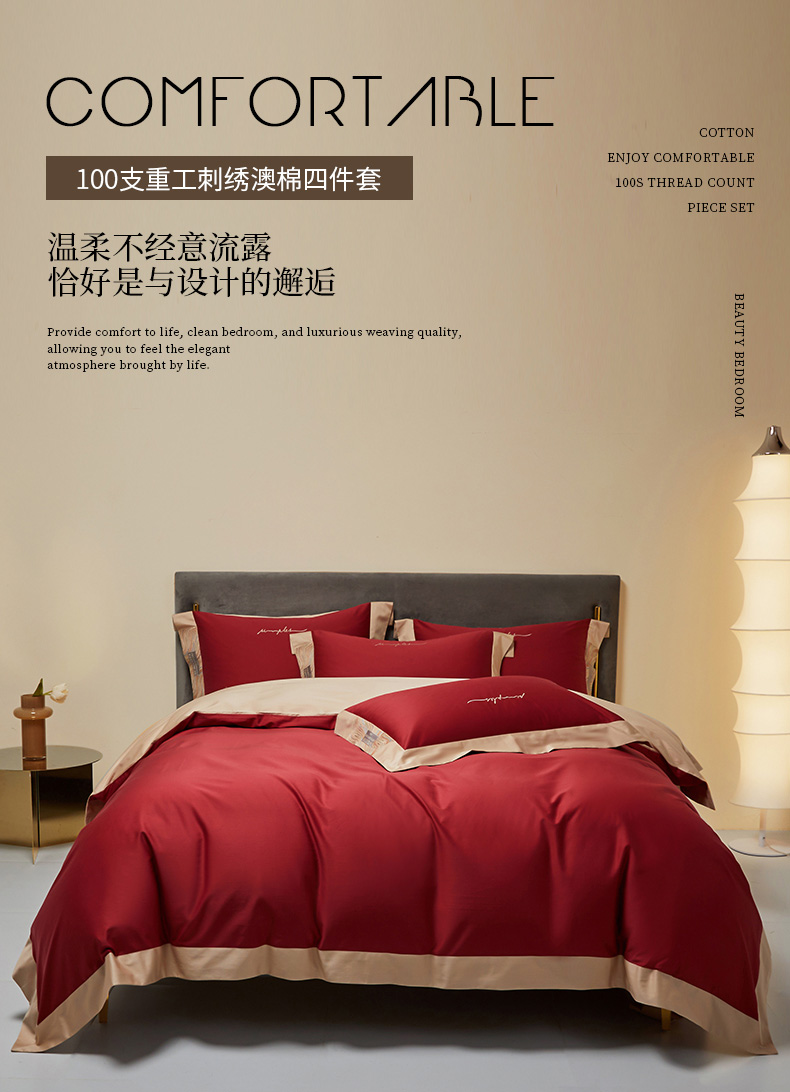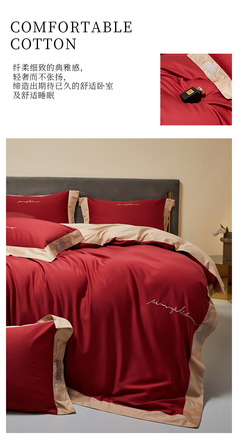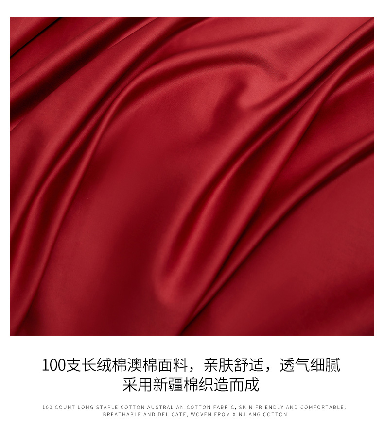 商品名称:爱缦 2023新款极光系列100支澳棉四件套风格二 胭脂红