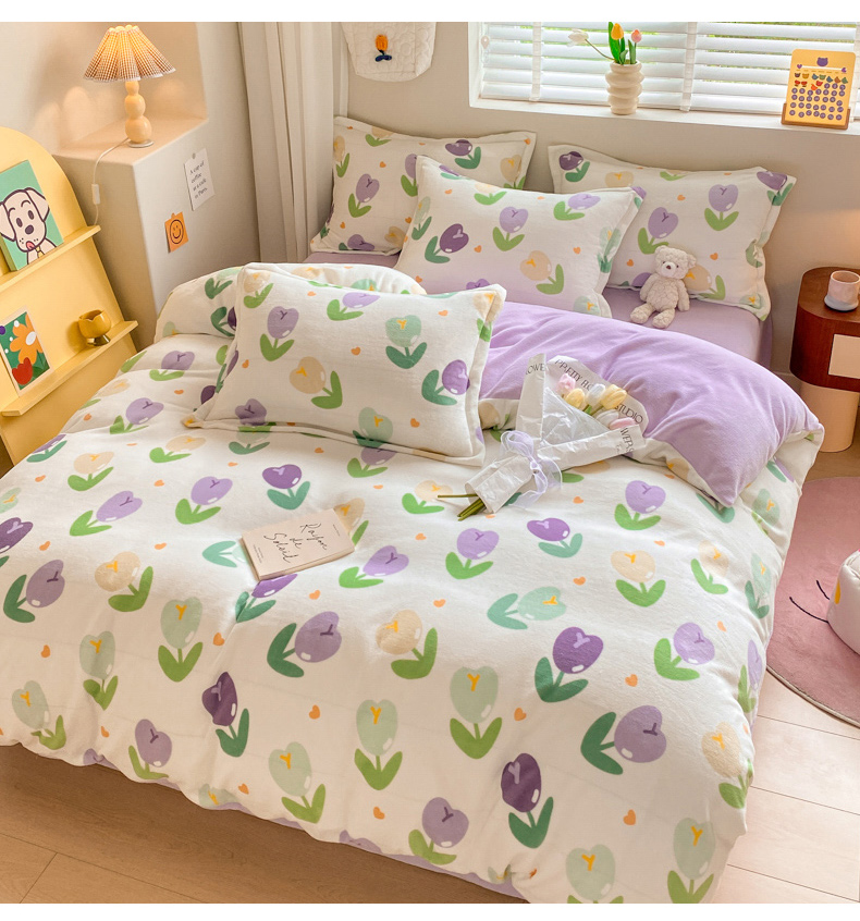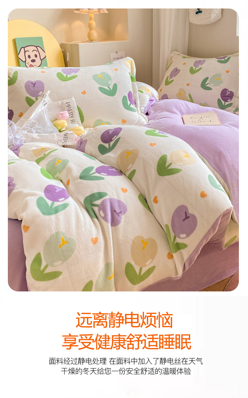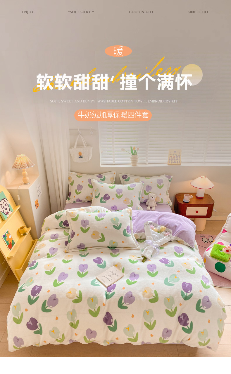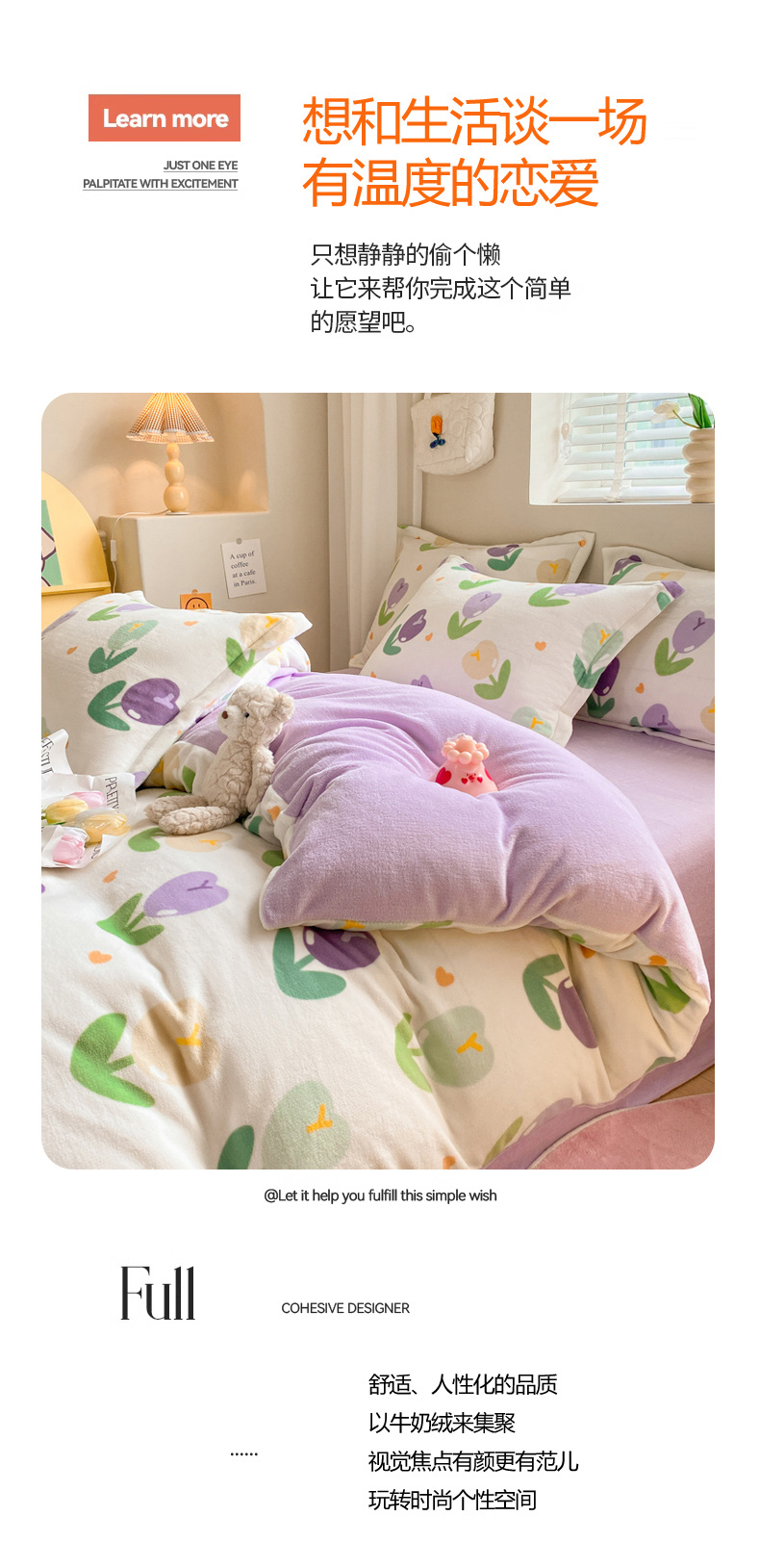 当前位置: 91家纺网 > 商品网购 > 床品套件 > 四件套 > 牛奶绒四件套 > 沐慕 2024新款牛奶绒加厚保暖卡通印花四件套 紫郁金香
