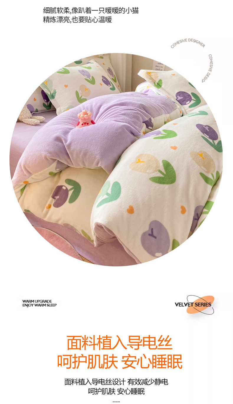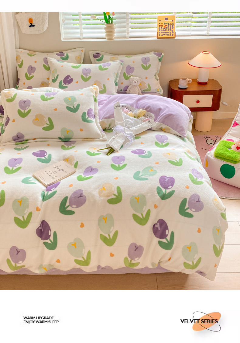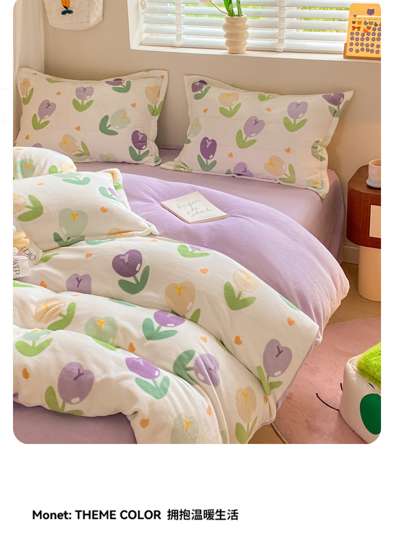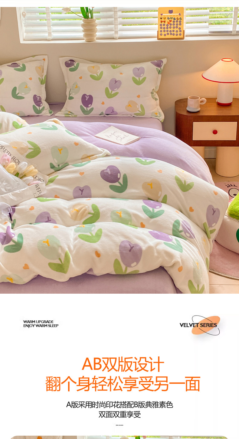 当前位置: 91家纺网 > 商品网购 > 床品套件 > 四件套 > 牛奶绒四件套 > 沐慕 2024新款牛奶绒加厚保暖卡通印花四件套 紫郁金香