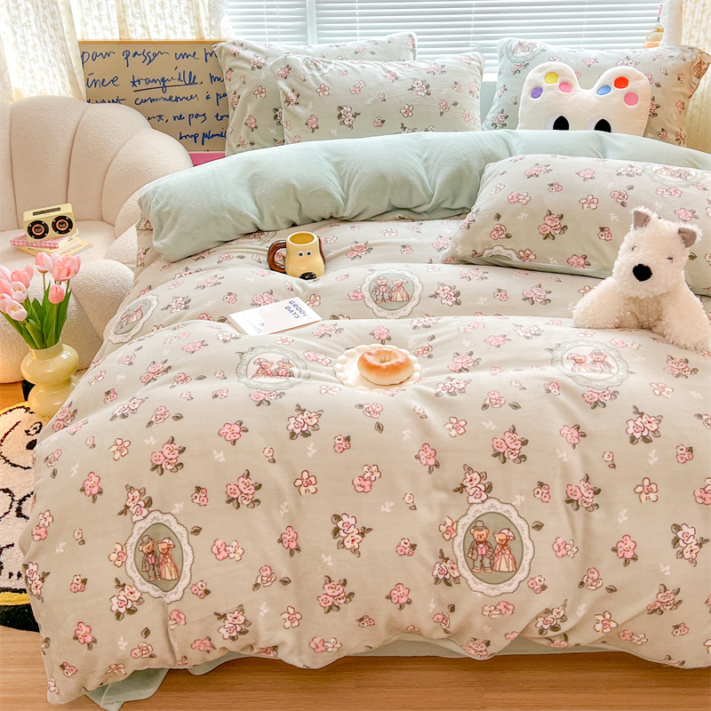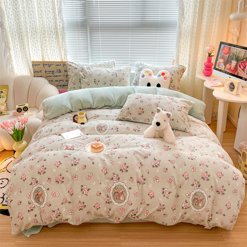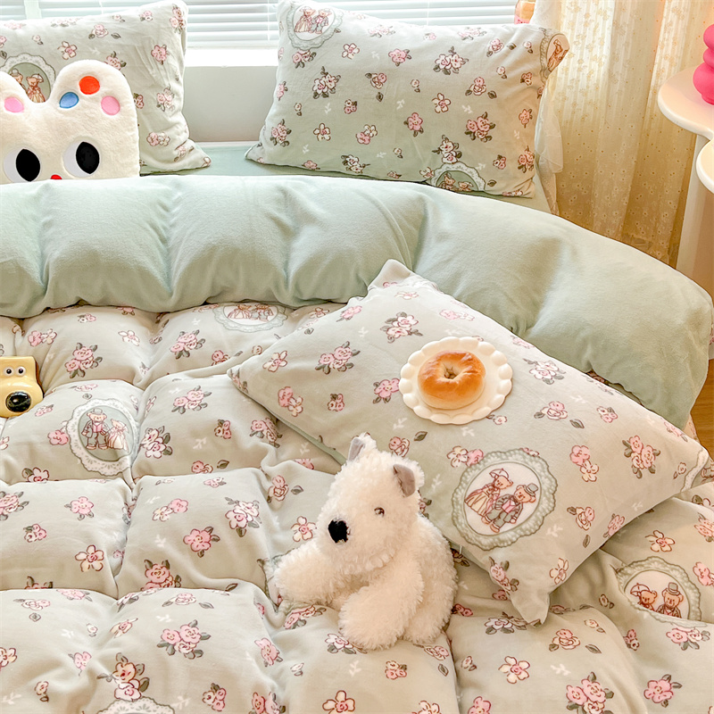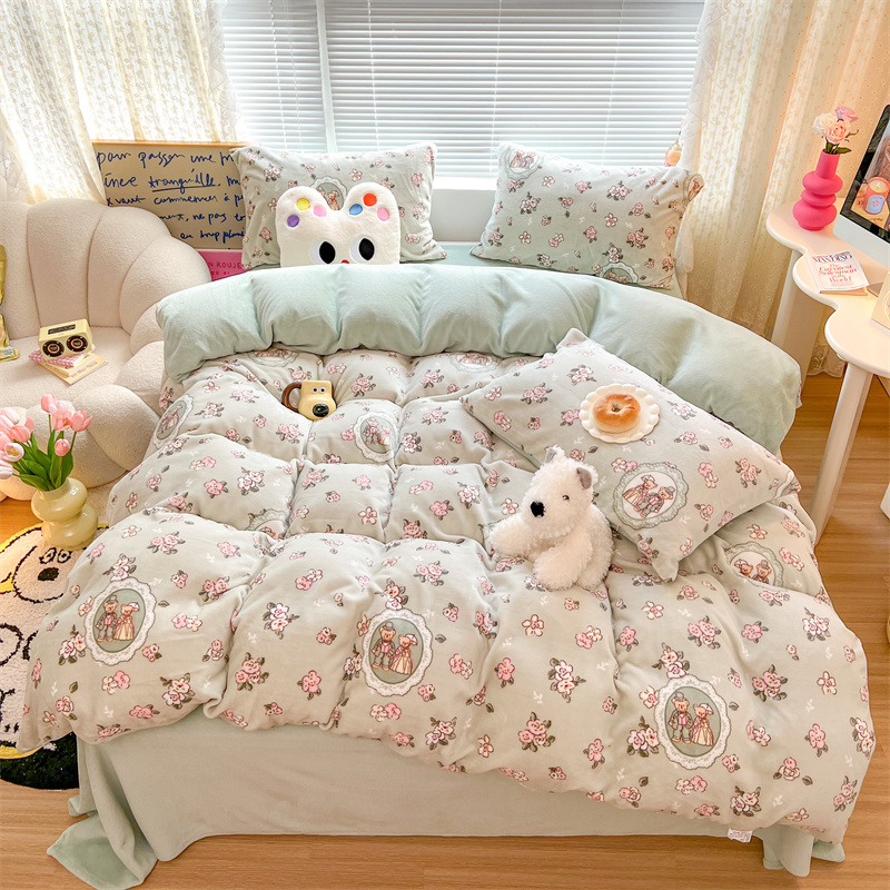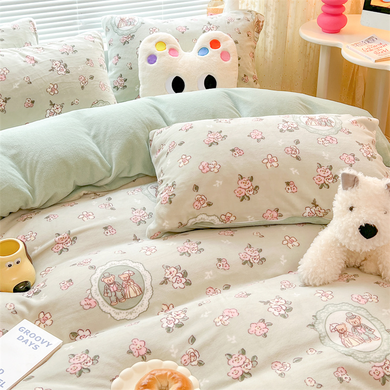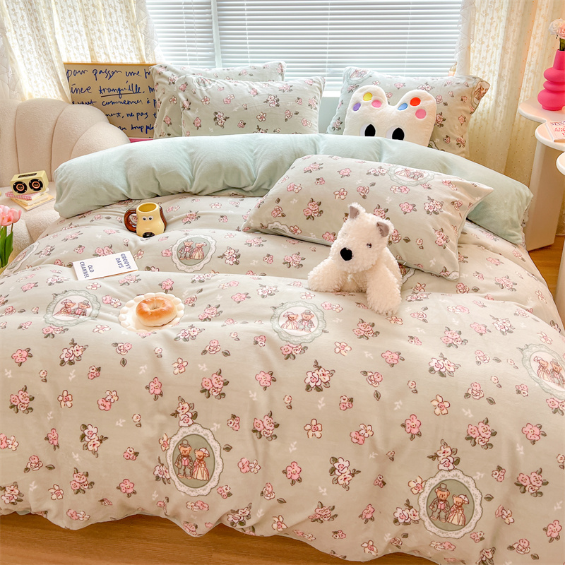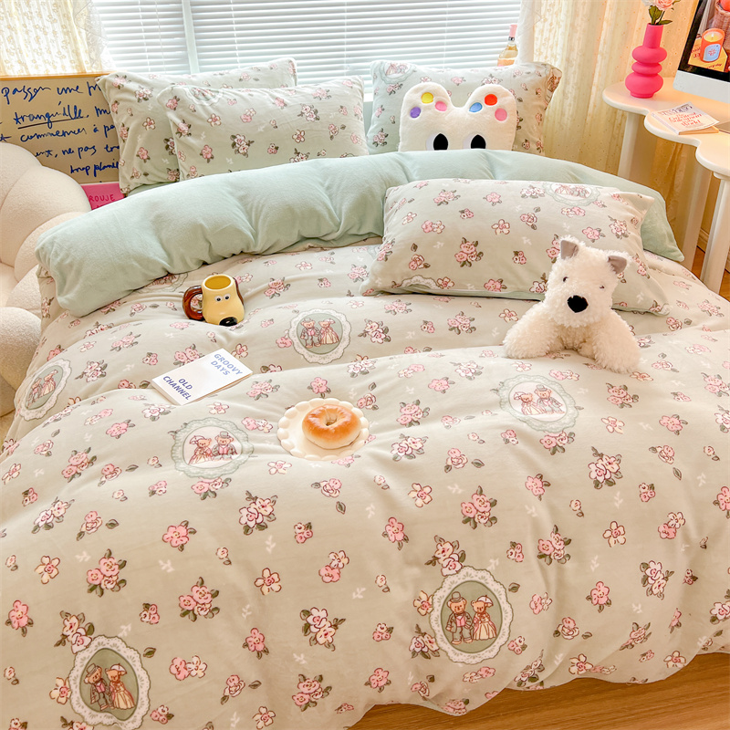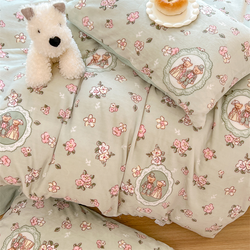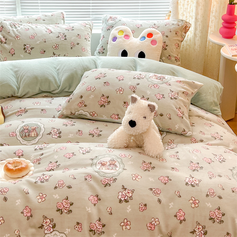 顾里家纺 新款ins少女保暖牛奶绒四件套第二批 碎花小熊