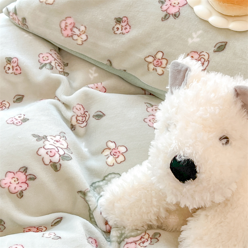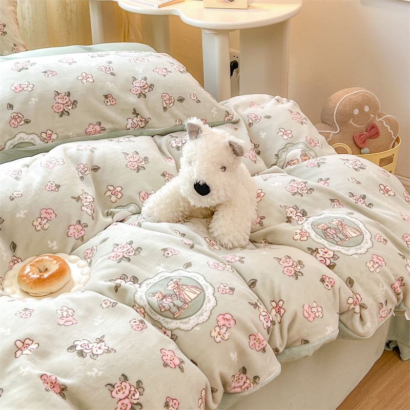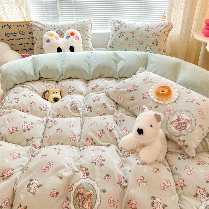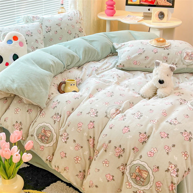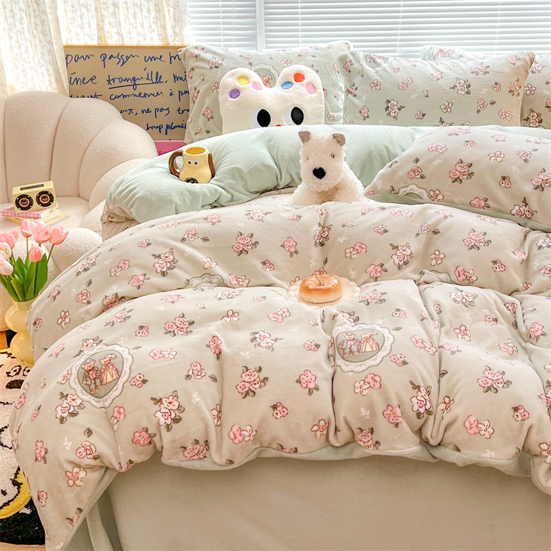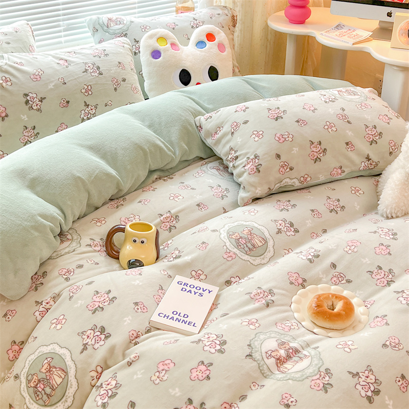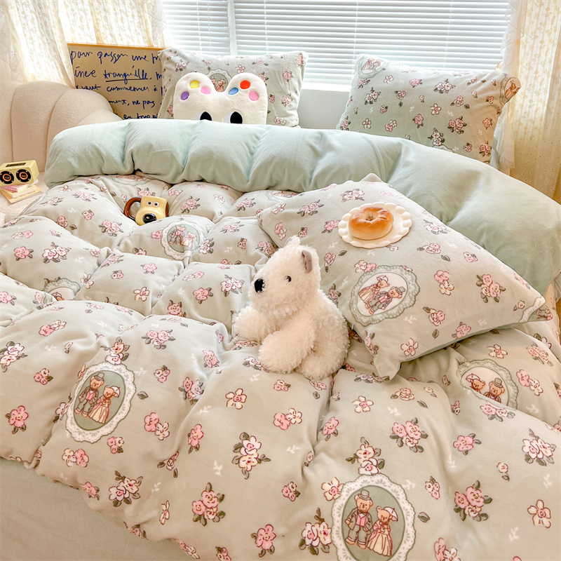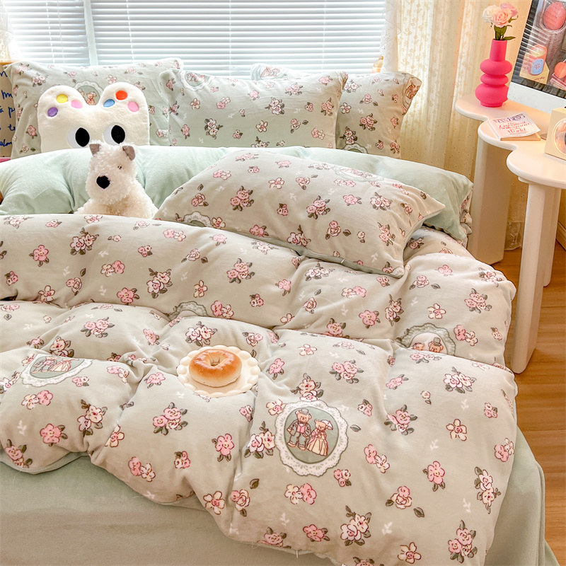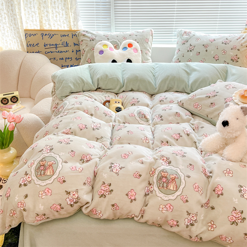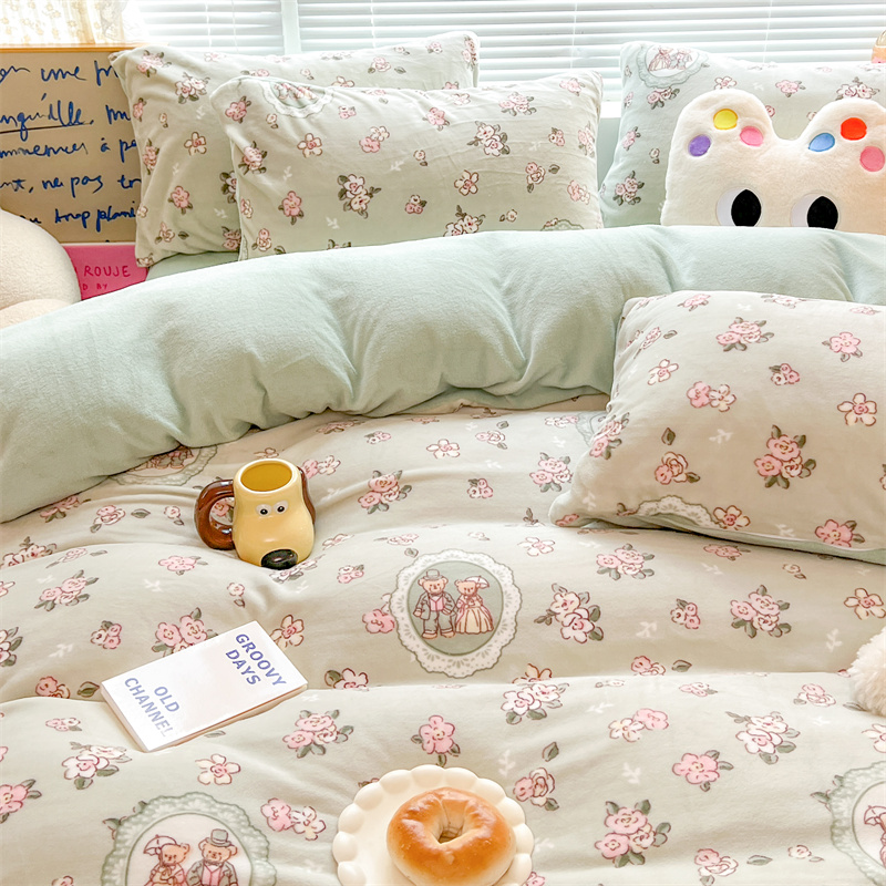 顾里家纺 新款ins少女保暖牛奶绒四件套第二批 碎花小熊